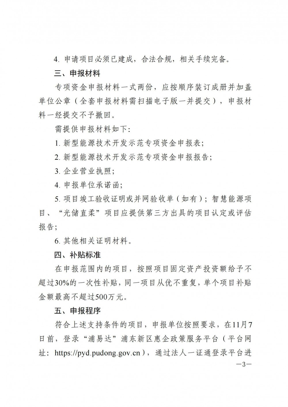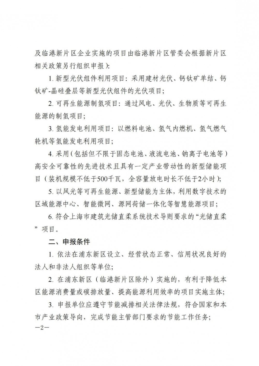 通知明确申报范围,2025年3月1日至2025年10月31日期间,在浦东新区范围内为新型能源技术开发转化而开发建设的新型能源项目:
