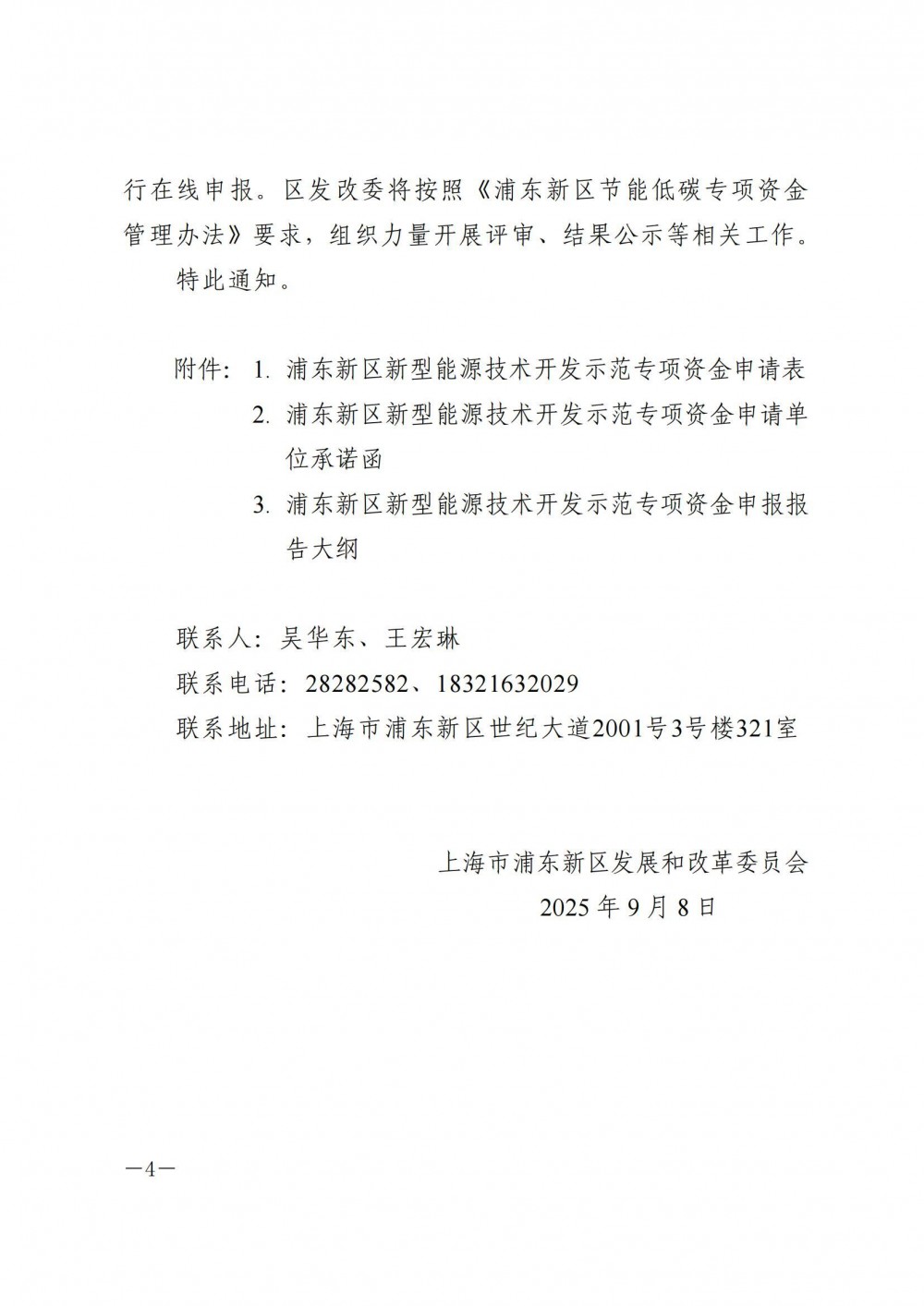 9月9日,关于组织开展浦东新区2025年新型能源技术开发示范专项资金项目申报的通知(沪浦发改能源〔2025〕677号)。