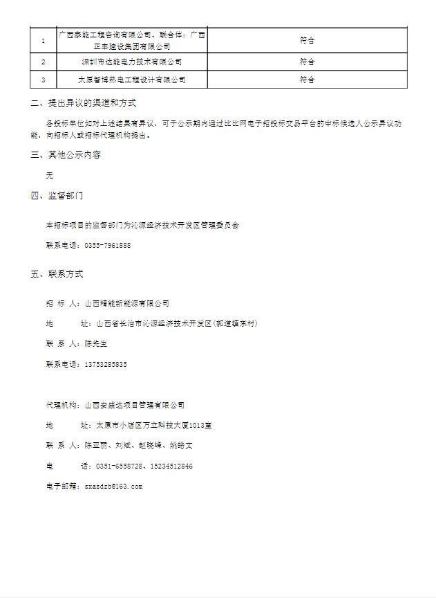 第一中标候选人为广西泰能工程咨询有限公司、广西正丰建设集团有限公司联合体,投标报价47999.699159万元,折合单价1.200元/Wh;第二中标候选人为深圳市达能电力技术有限公司,投标报价46397.719339万元,折合单价1.160元/Wh;第三中标候选人为太原智博热电工程设计有限公司,投标报价51760万元,折合单价1.294元/Wh。