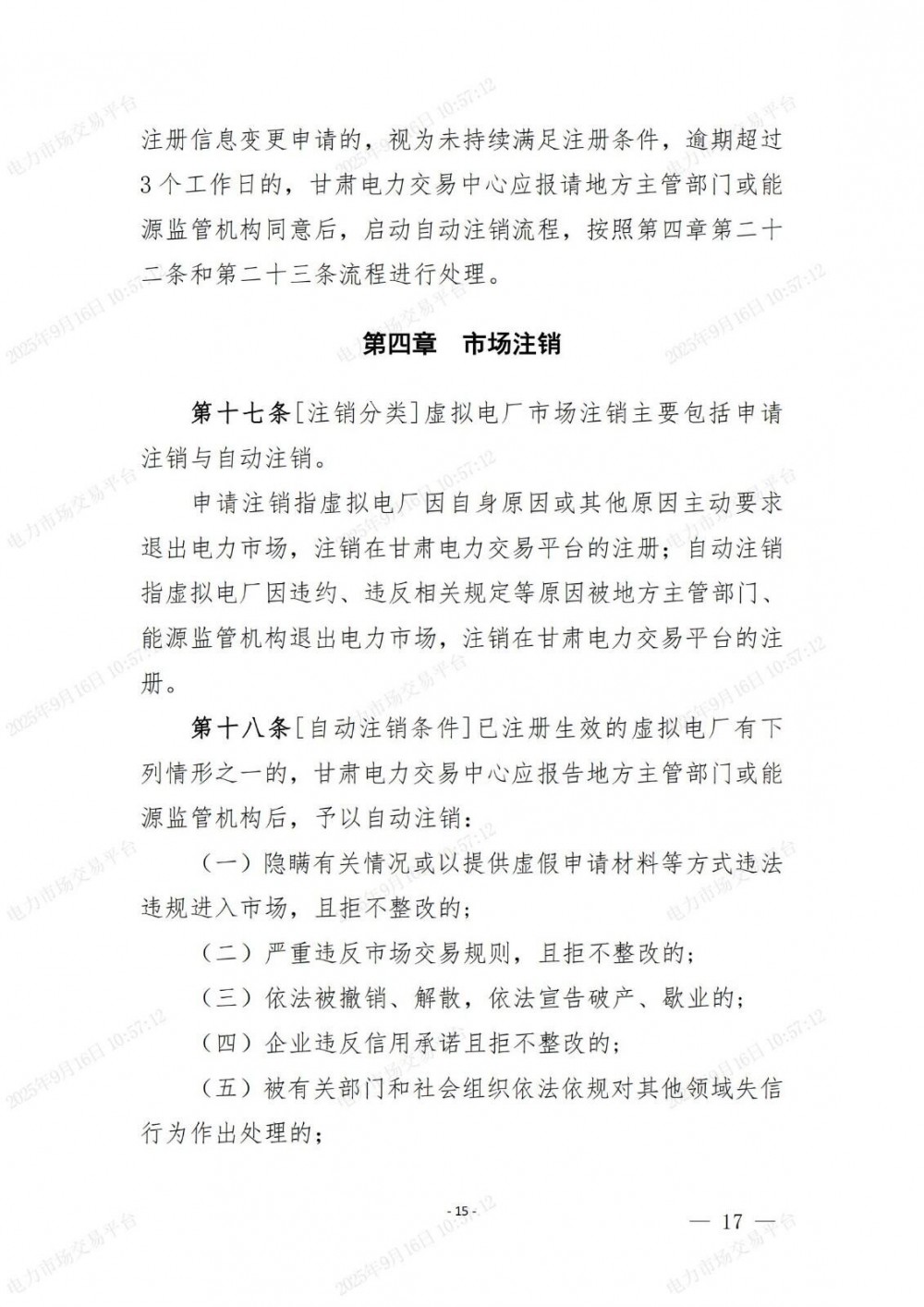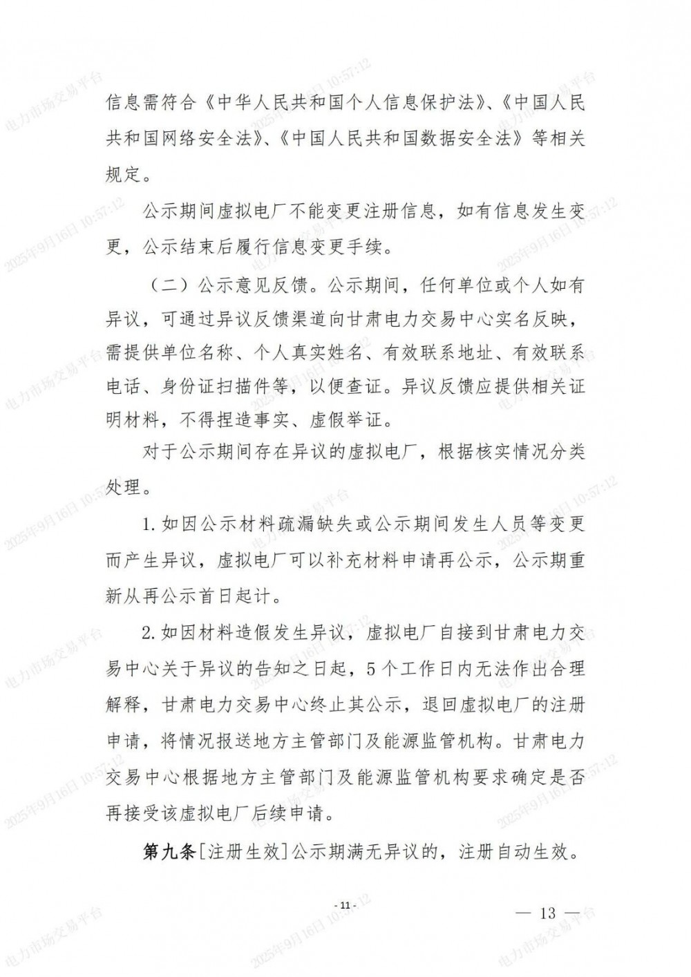 9月15日,甘肃电力交易中心发布关于印发《甘肃电力市场虚拟电厂注册规范指引(试行)》的通知,虚拟电厂申请注册应具备下列条件: