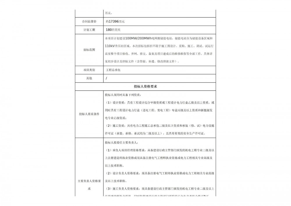 9月25日,全椒县椒阳100MW/200MWh电网侧储能项目(EPC)招标公告发布。