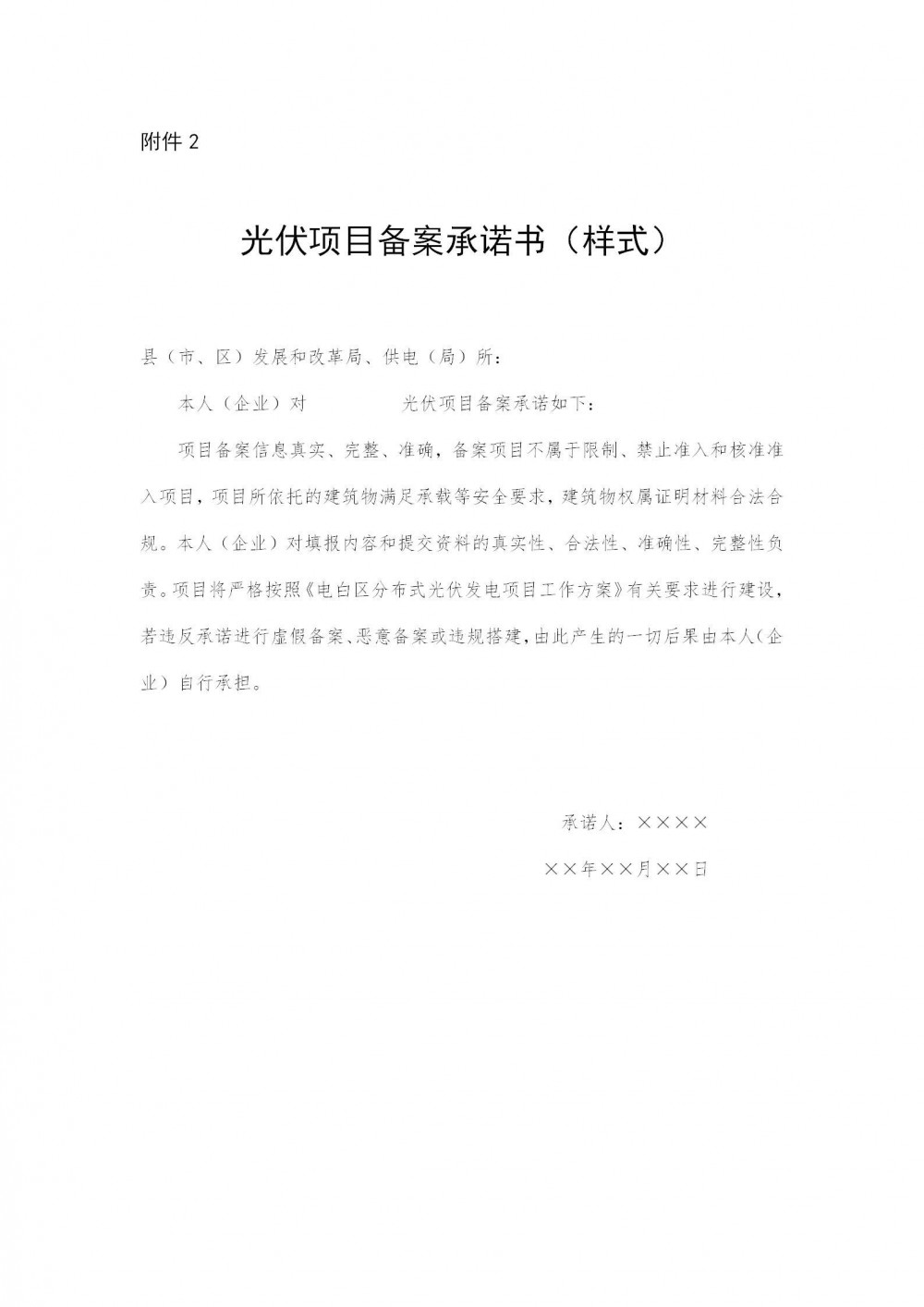7.分布式光伏发电项目备案承诺书;