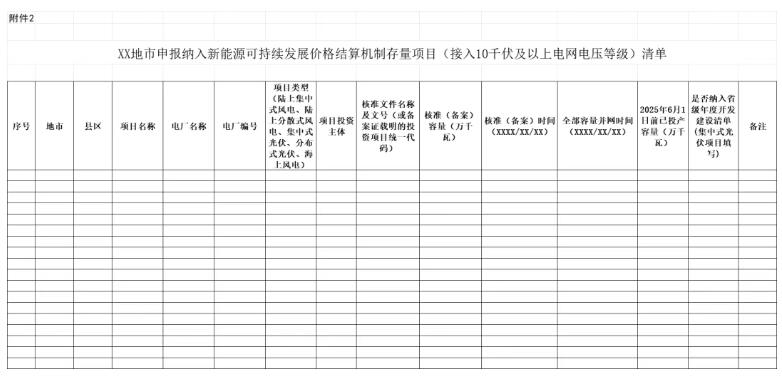附件2.XX地市申报纳入新能源可持续发展价格结算机制存量项目清单.xls