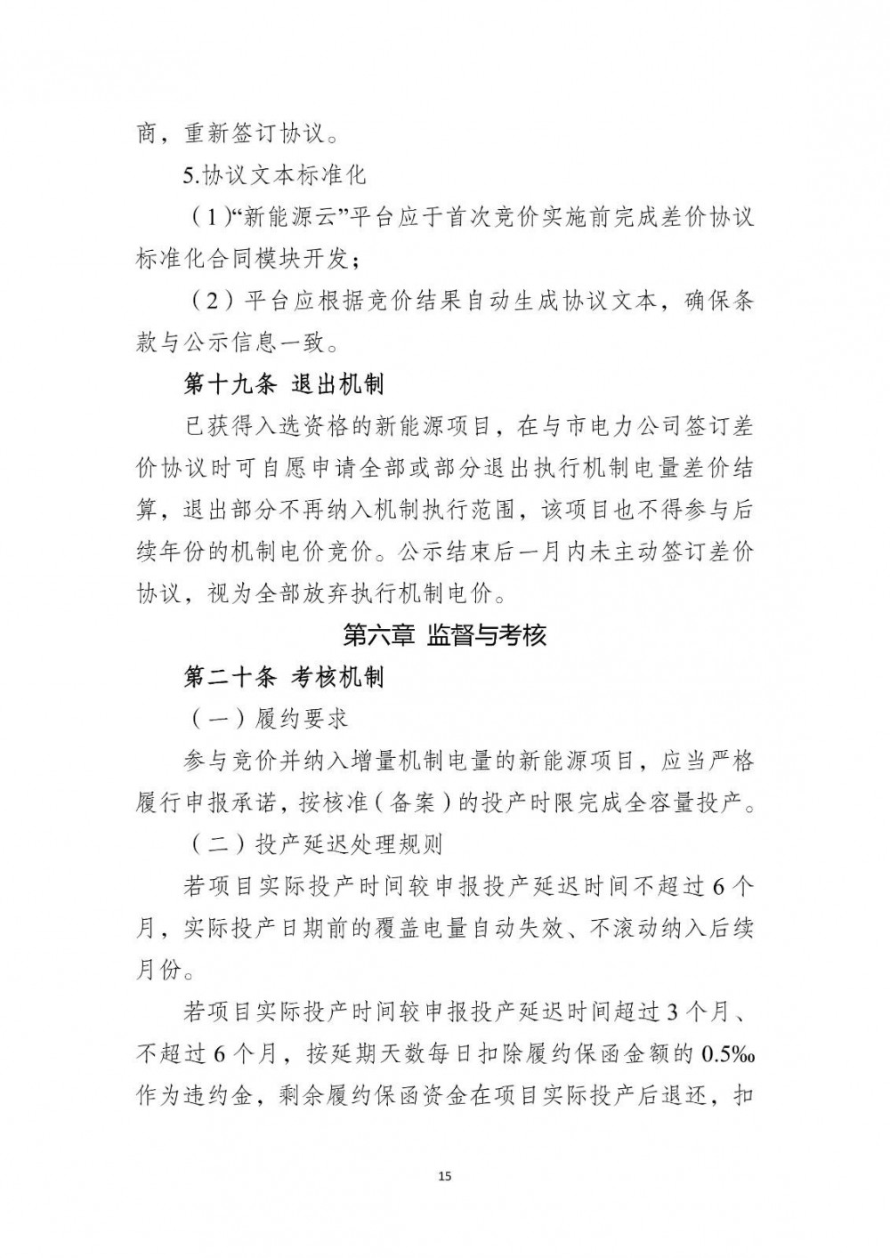 已获得入选资格的新能源项目,在与市电力公司签订差 价协议时可自愿申请全部或部分退出执行机制电量差价结 算,退出部分不再纳入机制执行范围,该项目也不得参与后 续年份的机制电价竞价。公示结束后一月内未主动签订差价 协议,视为全部放弃执行机制电价。