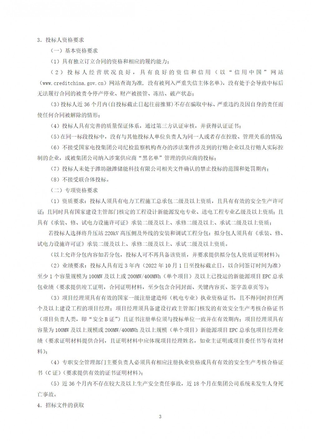 10月10日,国家电投发布山东潍坊滨海201MW/401MWh独立储能项目的一期100MW/200MWh项目EPC招标。
