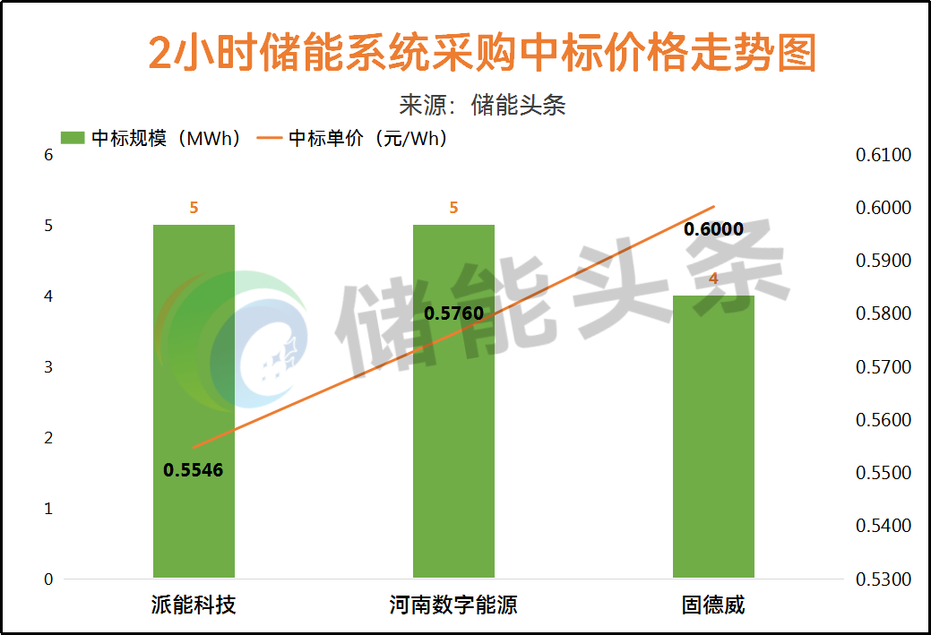 2小时储能系统项目招标有3个有效报价,均价为0.5769元/Wh。