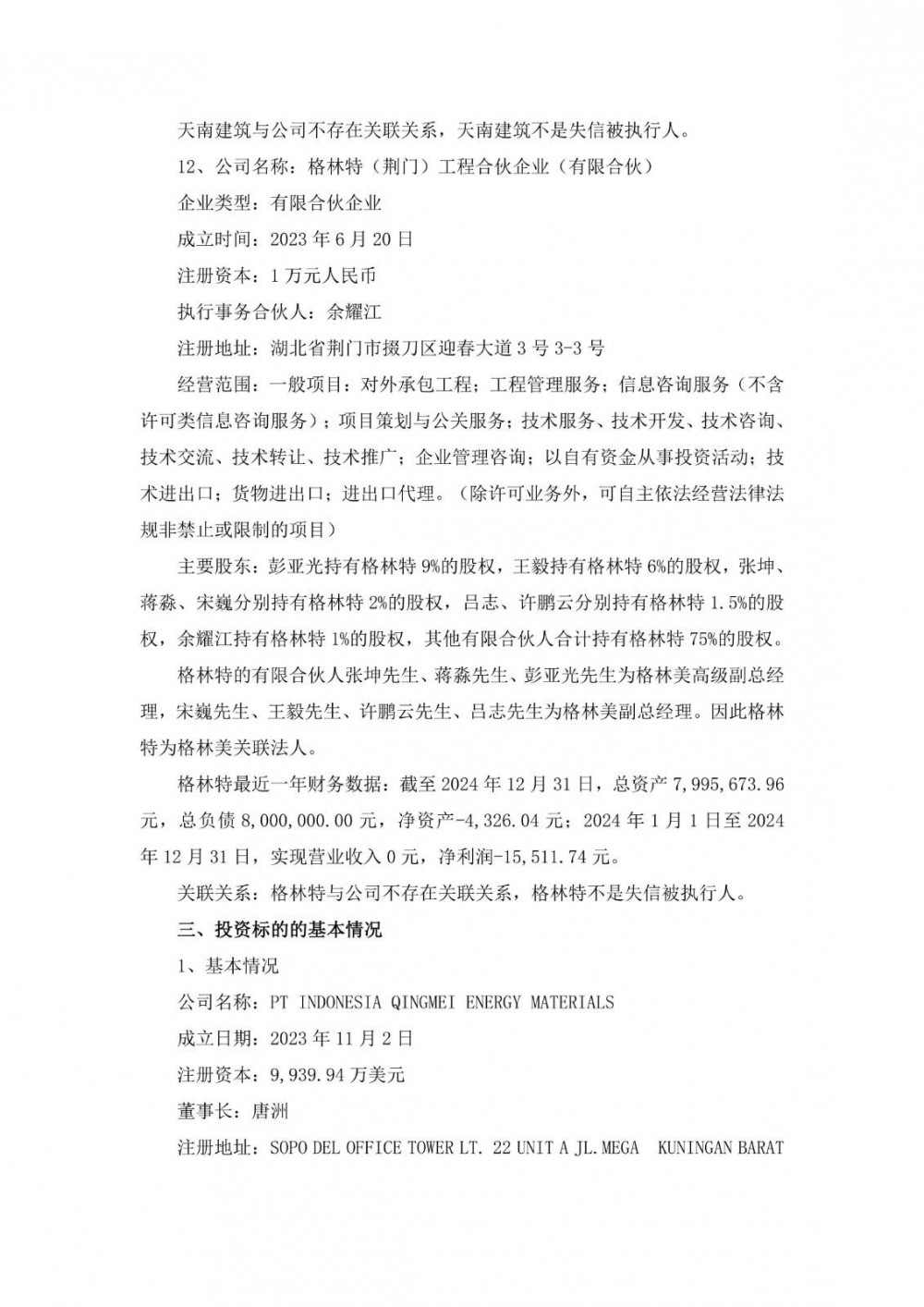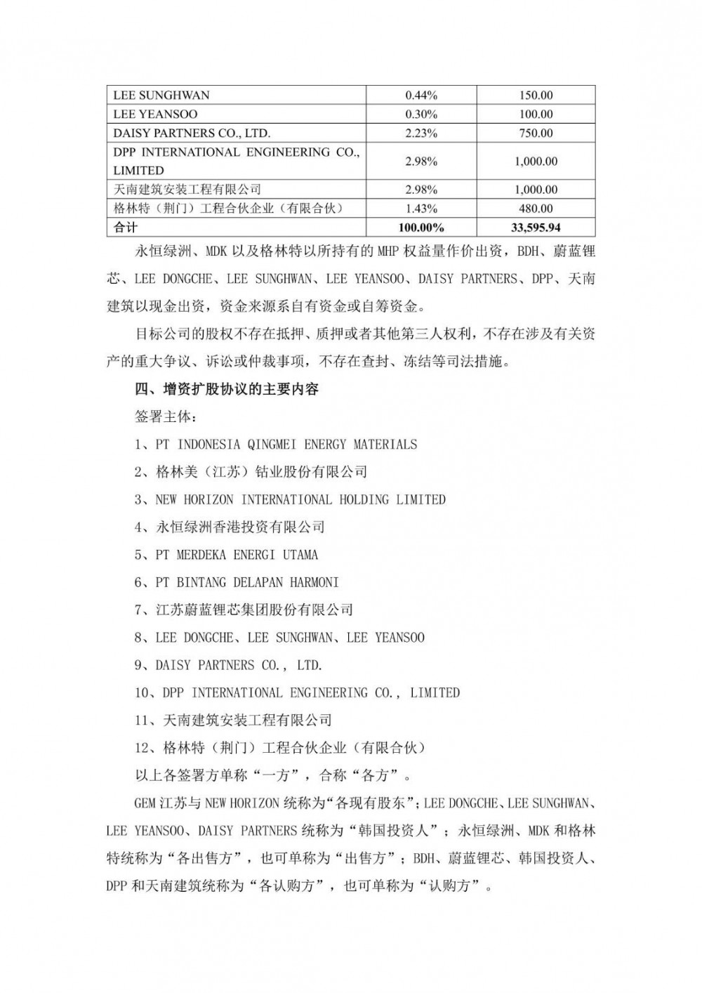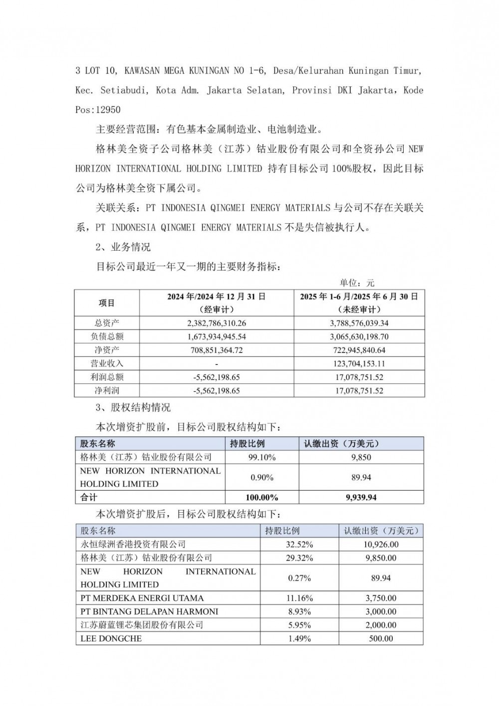 10月14日,蔚蓝锂芯发布公告称,公司董事会审议通过了《关于参与格林美印尼项目增资扩股的议案》,同意公司参与格林美印尼项目增资扩股事项,出资2000万美元增资PT INDONESIA QINGMEI EnergyMATERIALS(简称“目标公司”),最终获得目标公司5.95%股权。