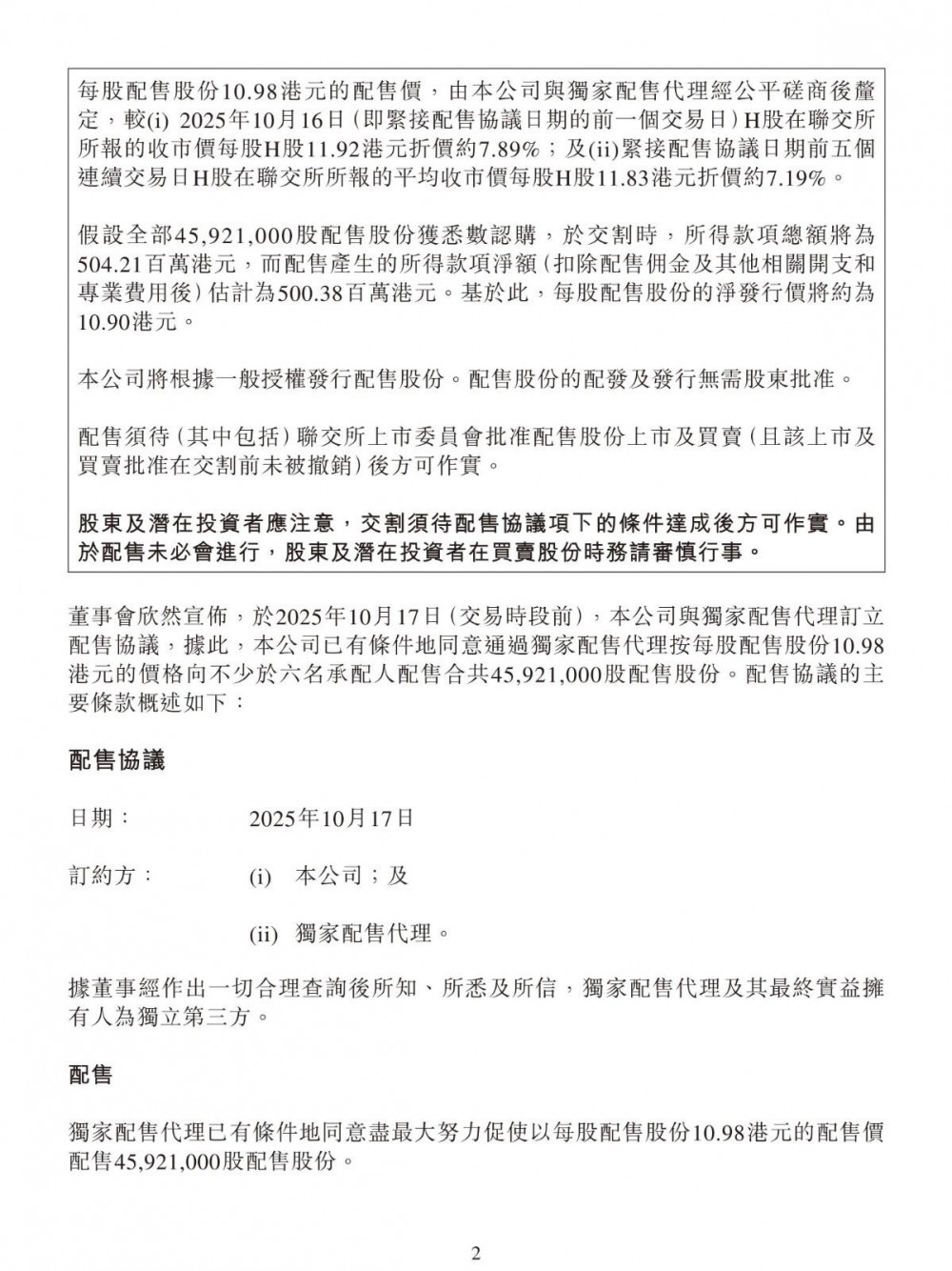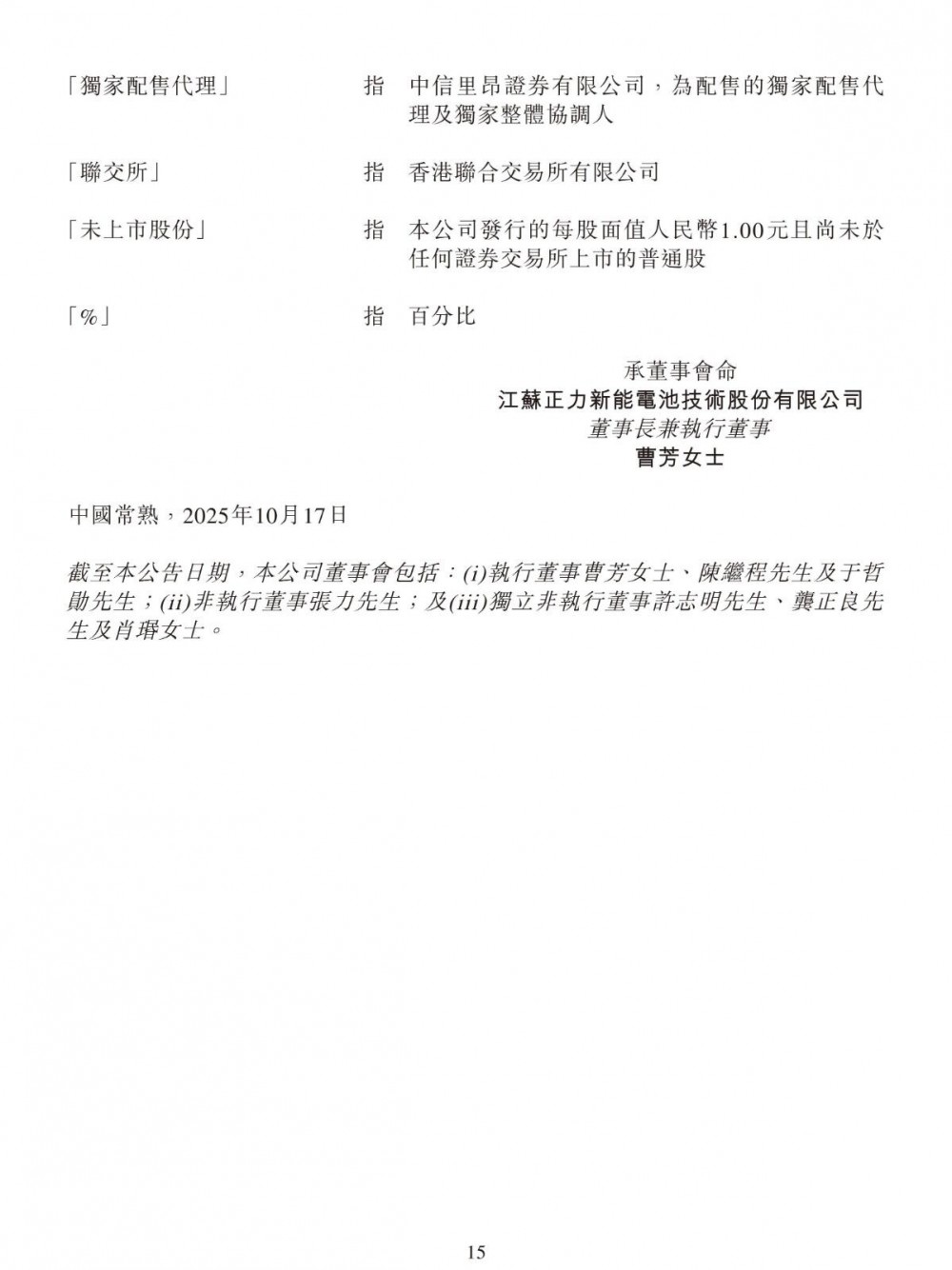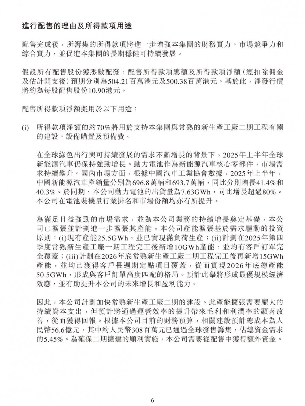 10月16日,正力新能发布公告称,公司与独家配售代理订立配售协议,据此,独家配售代理已同意作为公司的代理,尽最大努力促使不少于六名承配人以每股H股10.98港元的配售价购买合共4592.1000万股新H股。假设全部配售股份获悉数认购,于交割时,所得款项净额估计为5.0038亿港元,其中约70%将用于支持集团与常熟的新生产工厂二期工程有关的建设、设备购置及预备费,约10%将用于全固态电池中试线的建设,约10%将用于研发活动,约10%将用于营运资金及一般公司用途。