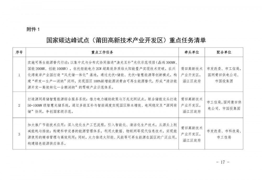 10月20日,福建莆田市人民政府发布关于印发国家碳达峰试点(莆田高新技术产业开发区)实施方案的通知。
