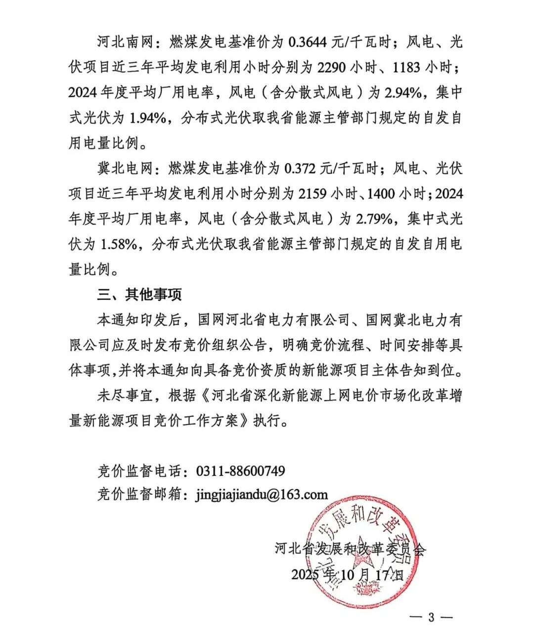 冀北电网:燃煤发电基准价为0.372元/千瓦时;风电、光伏项目近三年平均发电利用小时分别为2159小时、1400小时;2024年度平均厂用电率,风电(含分散式风电)为2.79%,集中式光伏为1.58%,分布式光伏取河北省能源主管部门规定的自发自用电量比例。
