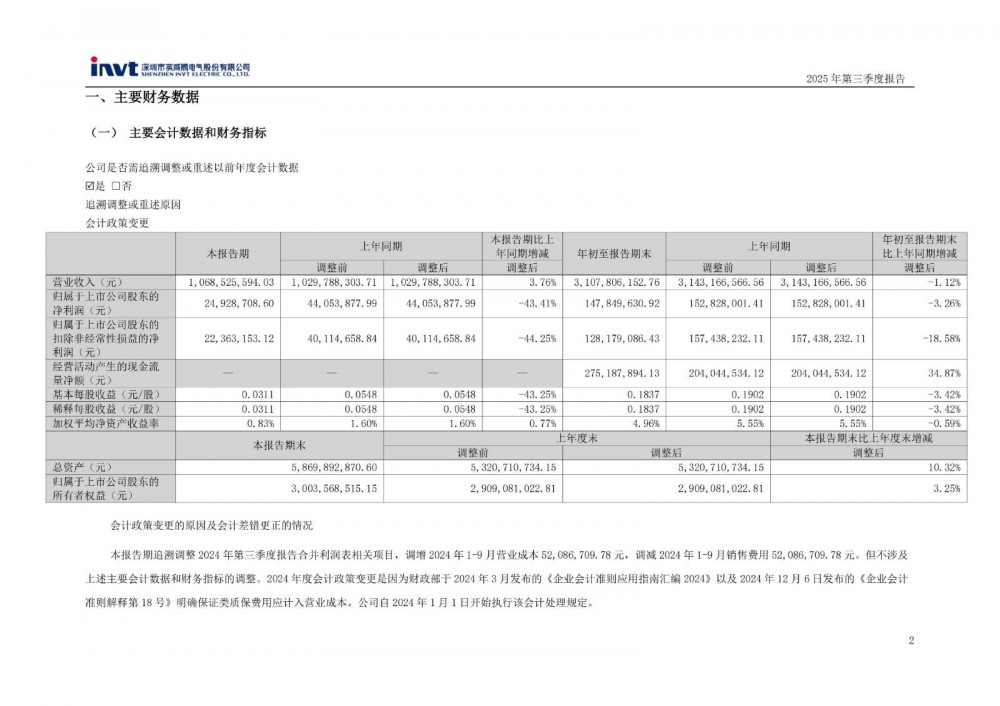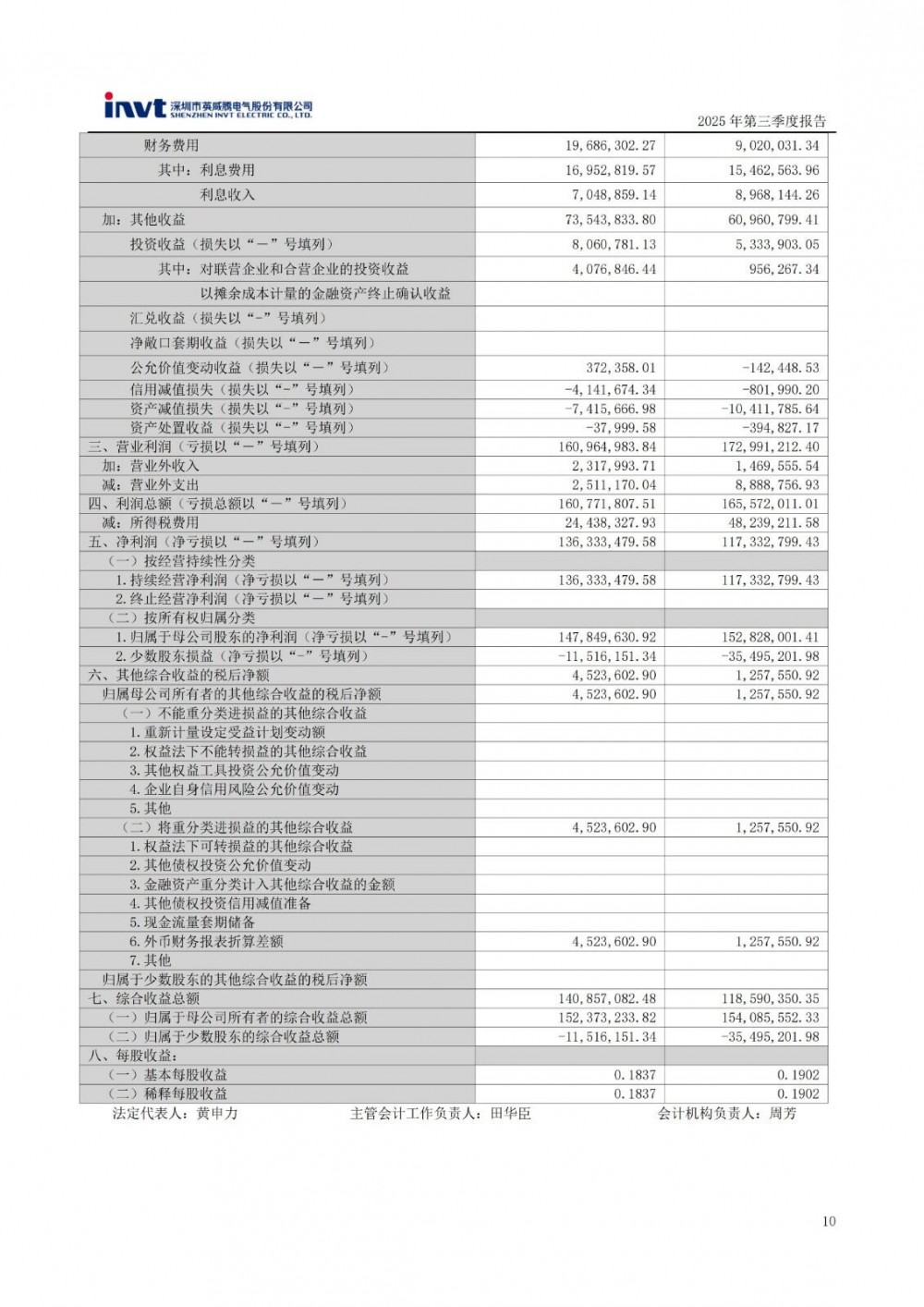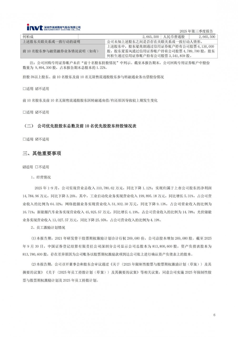 10月21日,英威腾发布2025年三季度报告。2025年1-9月,公司实现营业总收入310,780.62万元,同比下降1.12%;实现归属于上市公司股东的净利润14,784.96万元,同比下降3.26%。其中,工业自动化业务实现营业收入199,895.18万元,同比增长5.31%,占公司营业收入的比例为64.32%;网络能源业务实现营业收入51,932.30万元,同比下降9.13%,占公司营业收入的比例为16.71%;新能源汽车业务实现营业收入45,925.57万元,同比增长4.19%,占公司营业收入的比例为14.78%;光伏储能业务实现营业收入13,027.57万元,同比下降25.95%,占公司营业收入的比例为4.19%。