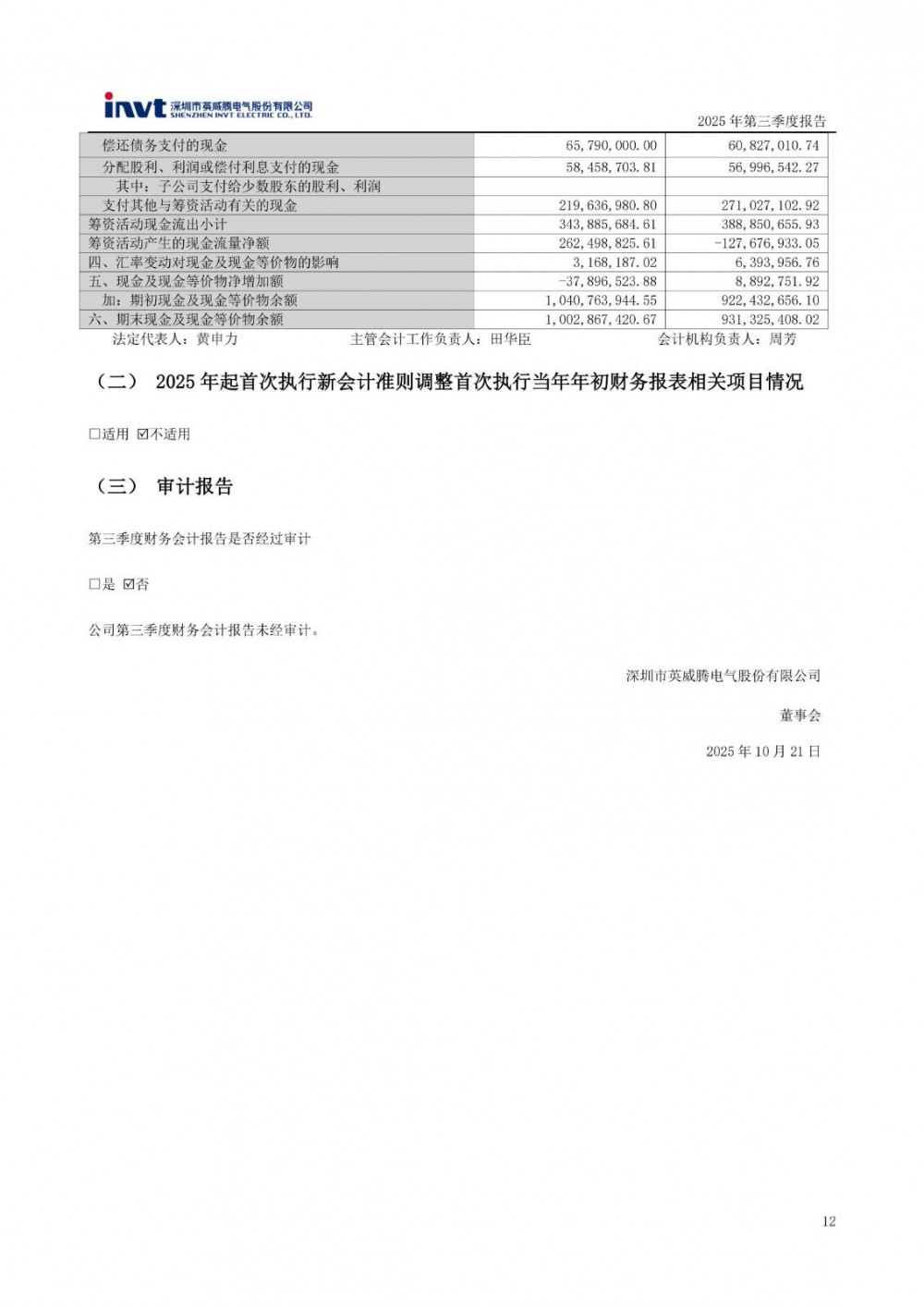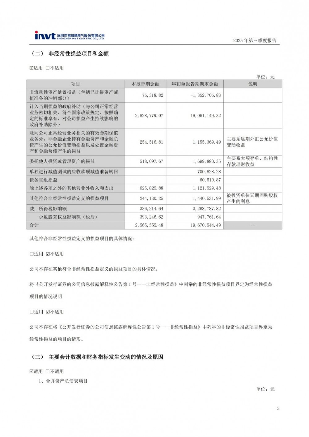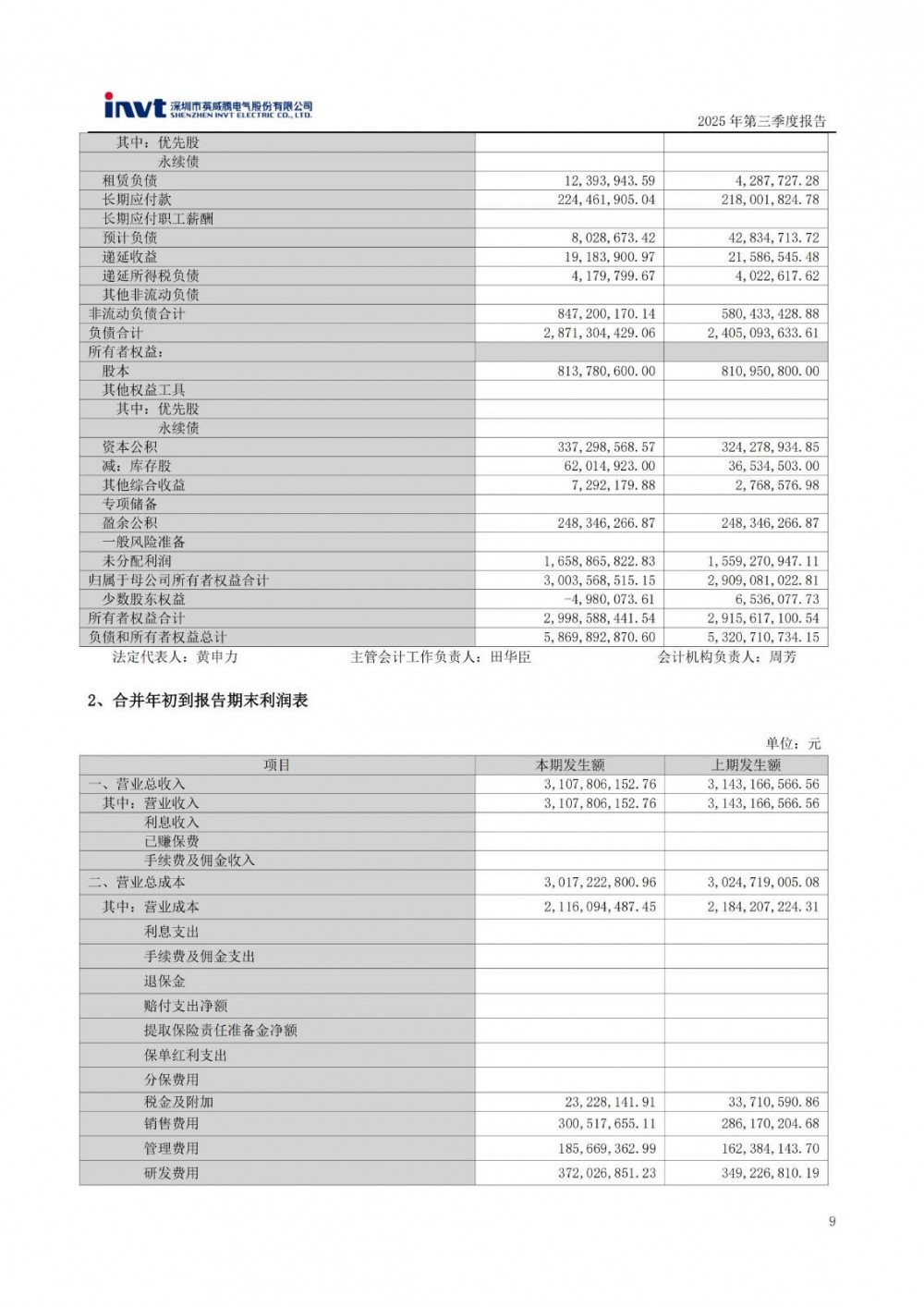 10月21日,英威腾发布2025年三季度报告。2025年1-9月,公司实现营业总收入310,780.62万元,同比下降1.12%;实现归属于上市公司股东的净利润14,784.96万元,同比下降3.26%。其中,工业自动化业务实现营业收入199,895.18万元,同比增长5.31%,占公司营业收入的比例为64.32%;网络能源业务实现营业收入51,932.30万元,同比下降9.13%,占公司营业收入的比例为16.71%;新能源汽车业务实现营业收入45,925.57万元,同比增长4.19%,占公司营业收入的比例为14.78%;光伏储能业务实现营业收入13,027.57万元,同比下降25.95%,占公司营业收入的比例为4.19%。