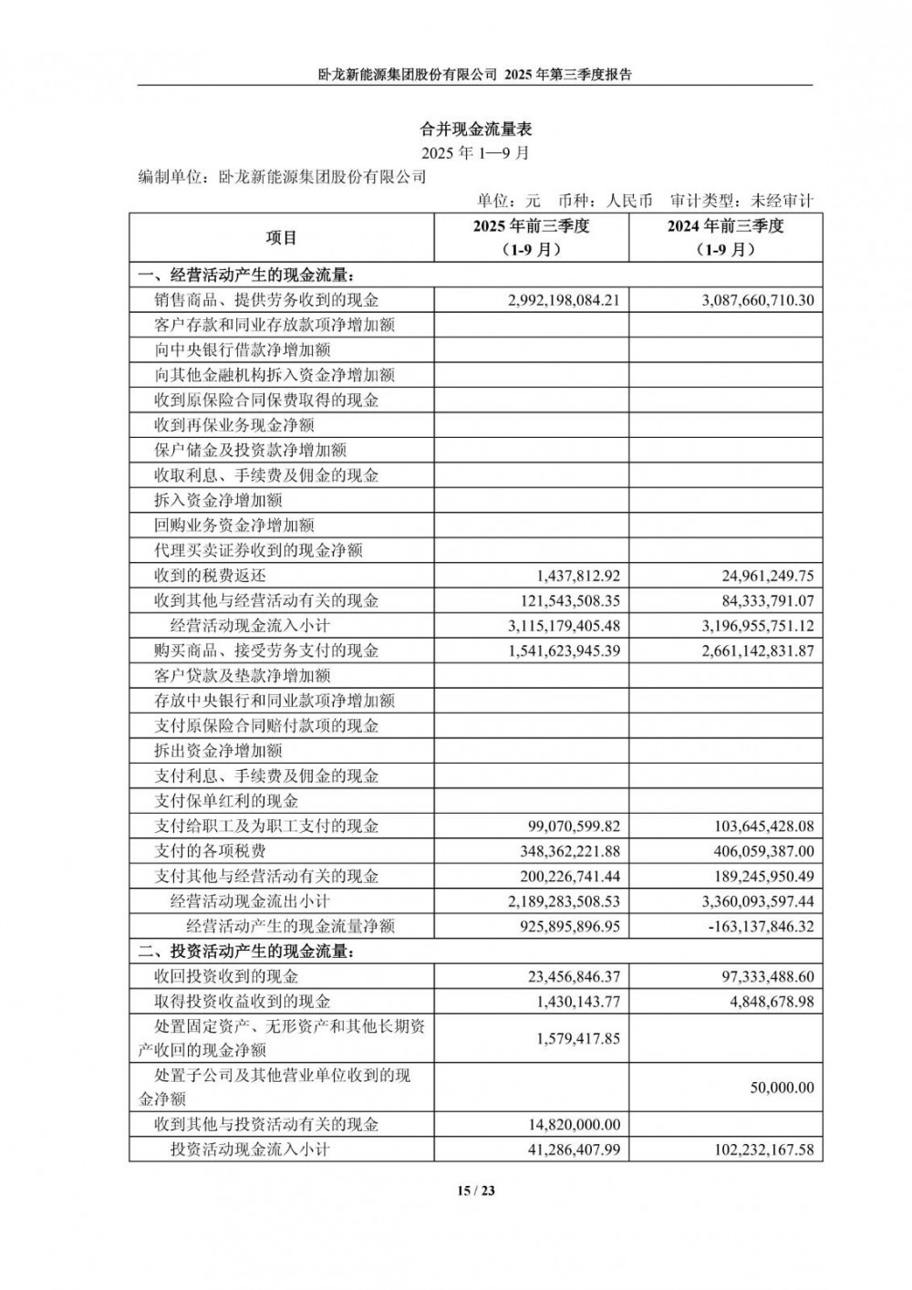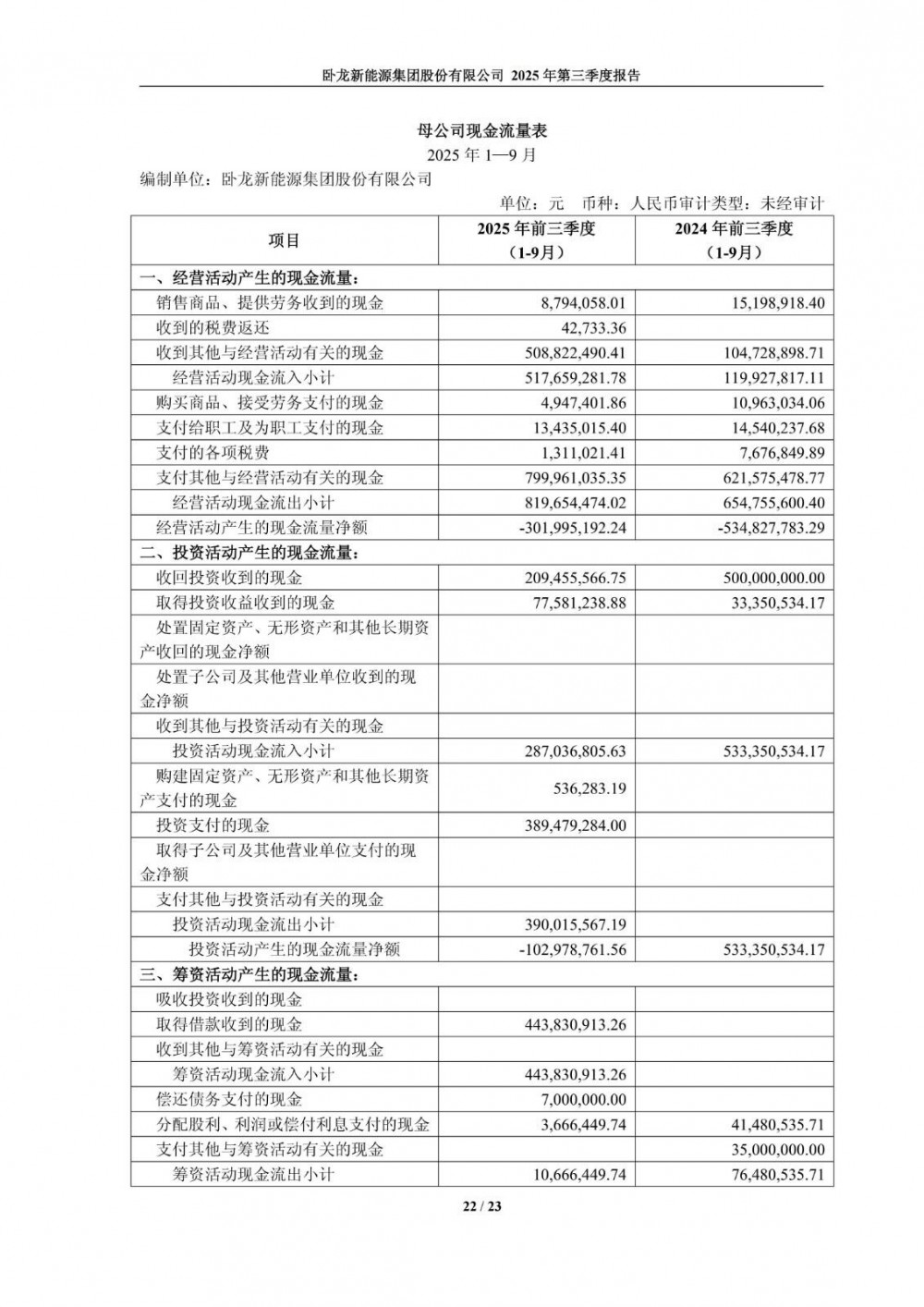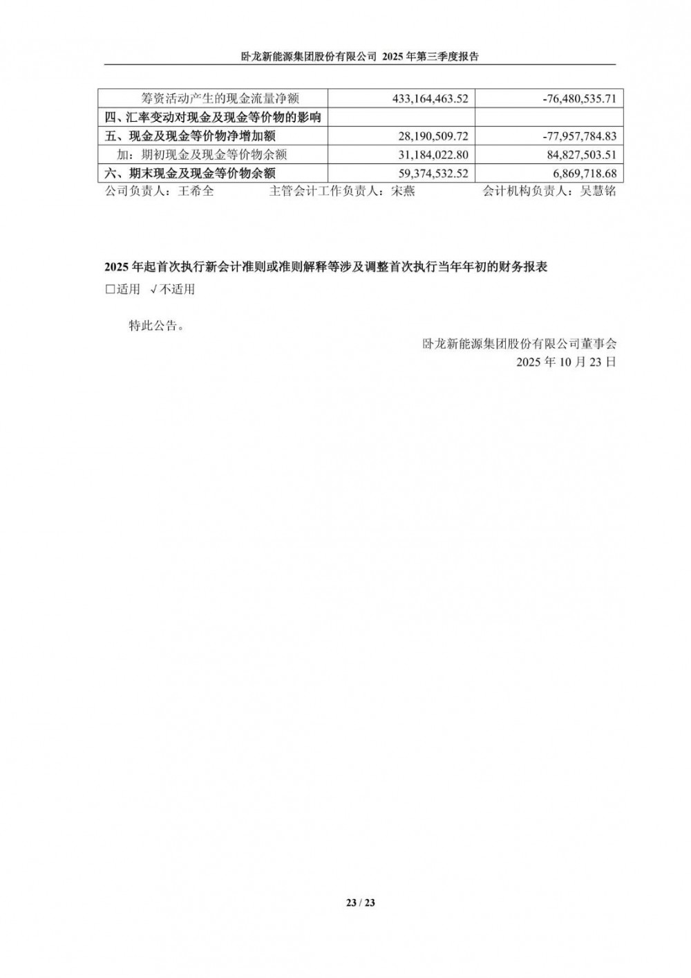 10月23日,卧龙新能发布2025年第三季度报告。公司第三季度营业收入3.2亿元,同比下降78.49%;净利润-579.7万元,同比由盈转亏。前三季度营业收入24.69亿元,同比下降19.36%;净利润7575.01万元,同比下降42.7%。