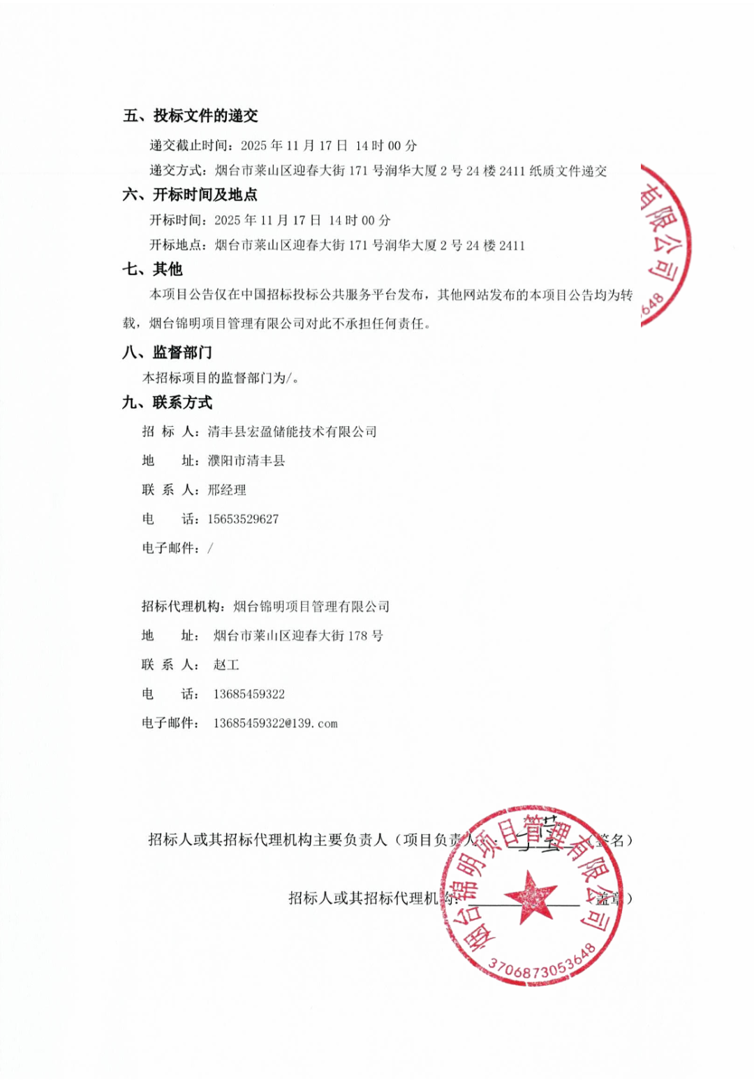 储能界获悉,10月25日,清丰县宏盈100MW/400MWh储能电站项目工程总承包(EPC)公开招标公告发布。