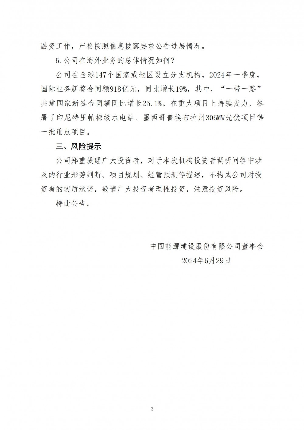 据储能界了解到,6月28日,中国能建发布关于接待机构投资者调研活动的公告。