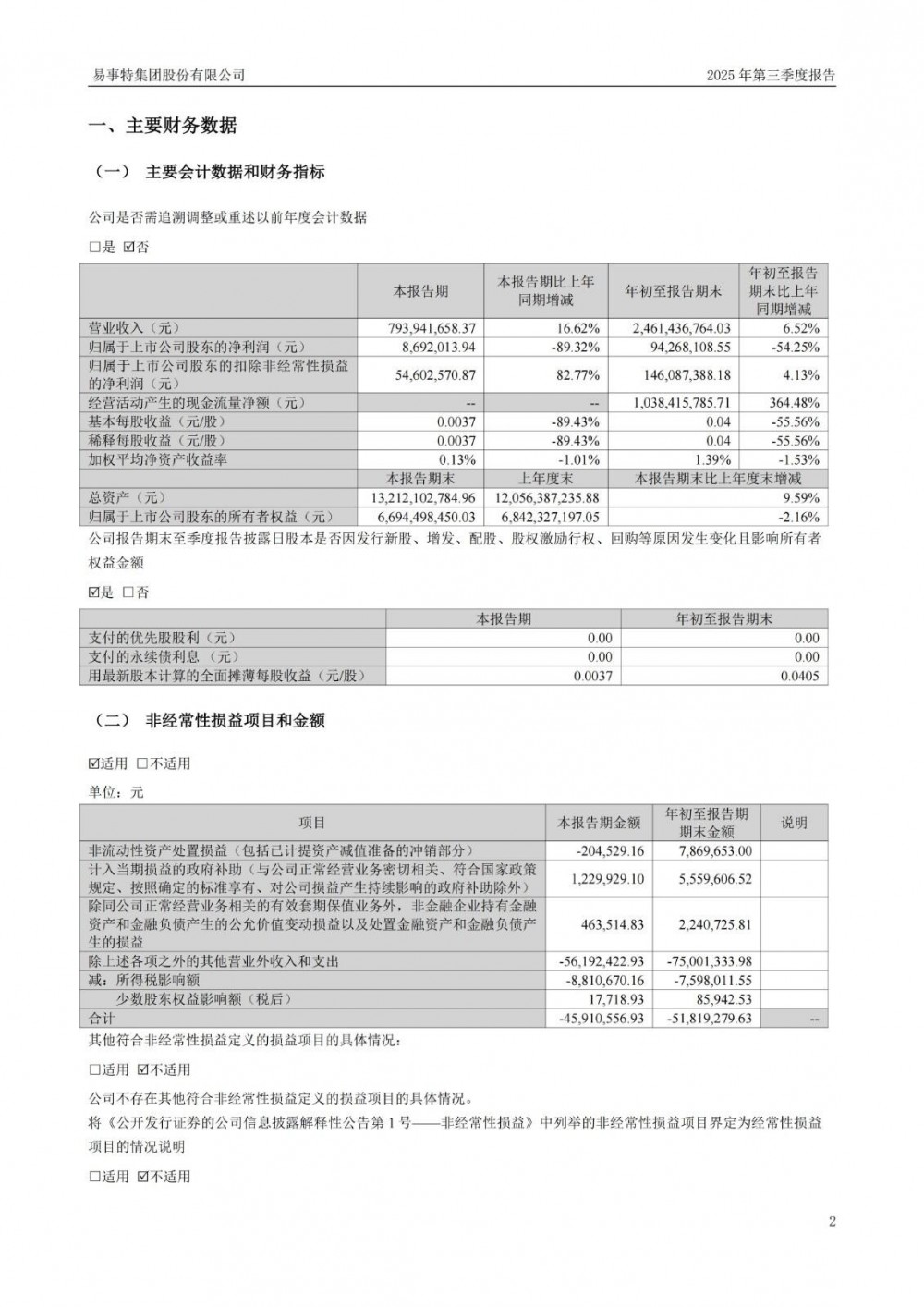 10月27日,易事特发布2025年三季度报告。前三季度公司实现营业总收入24.61亿元,同比增长6.52%;归母净利润9426.81万元,同比下降54.25%;扣非净利润1.46亿元,同比增长4.13%。