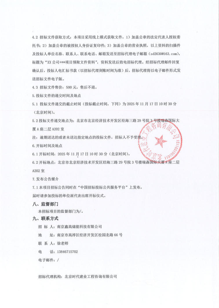 10月27日,南京宁高协鑫5万千瓦/10万千瓦时储能电站项目招标公告发布。项目资金来源为自筹资金5800万元,招标人为南京鑫高储能科技有限公司。