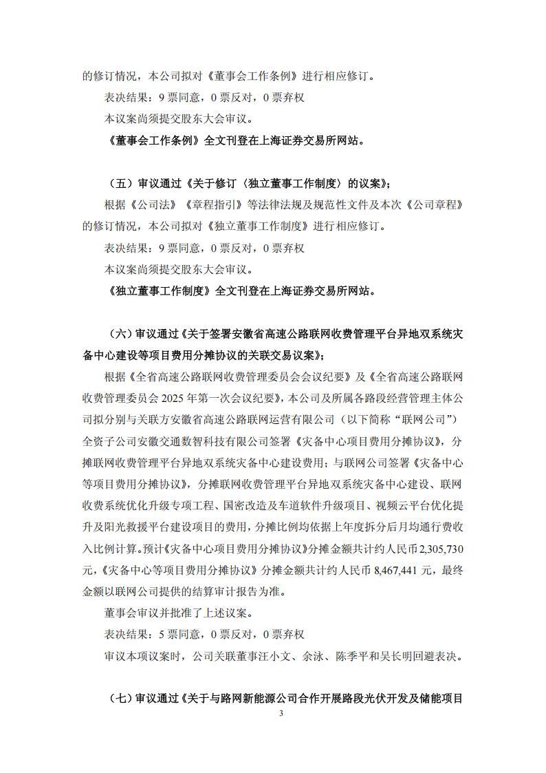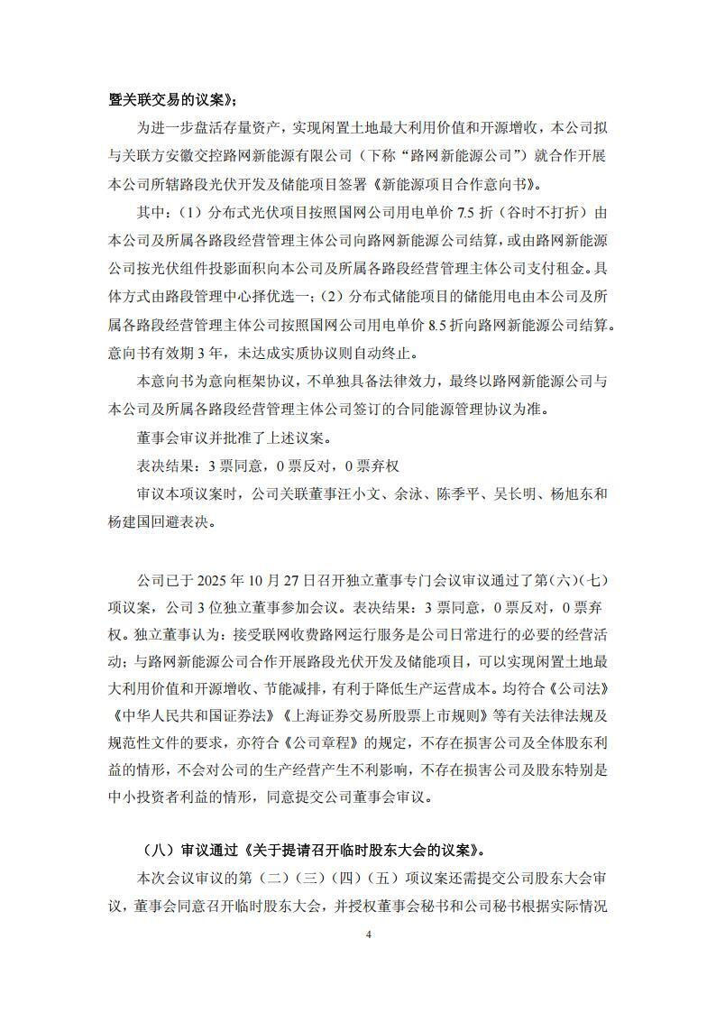 根据公告,皖通高速董事会审议通过《关于与路网新能源公司合作开展路段光伏开发及储能项目暨关联交易的议案》。