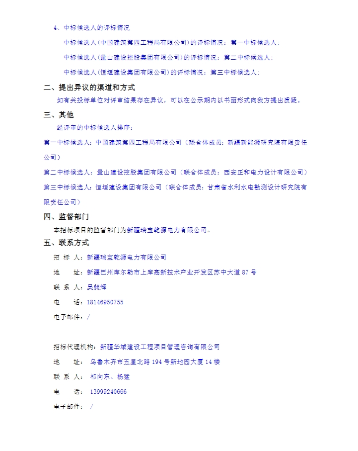 第一中标候选人为中国电建集团核电工程有限公司,投标报价为214400.86万元;第二中标候选人为中能建建筑集团有限公司,投标报价为213500万元;第三中标候选人为山东电力建设第三工程有限公司,投标报价为215400.5万元。