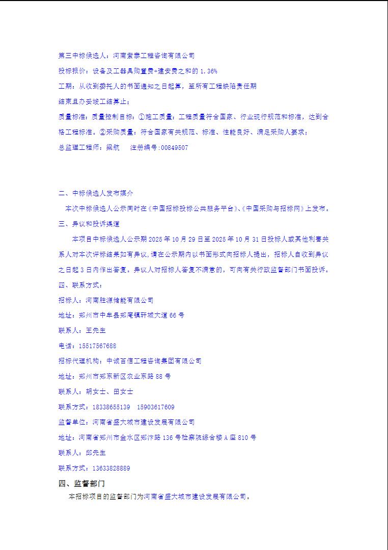 10月28日,中牟县独立共享储能项目中标候选人公示。