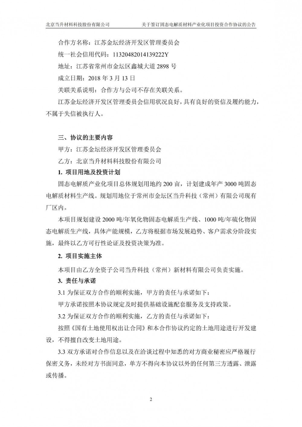 10月29日,当升科技发布公告称,为加快全固态电解质产业化进程,完善北京当升材料科技股份有限公司固态锂电材料产能布局,公司与江苏金坛经济开发区管理委员会签署《“固态电解质材料产业化项目”投资合作协议》,项目实施主体是公司全资子公司当升科技(常州)新材料有限公司。