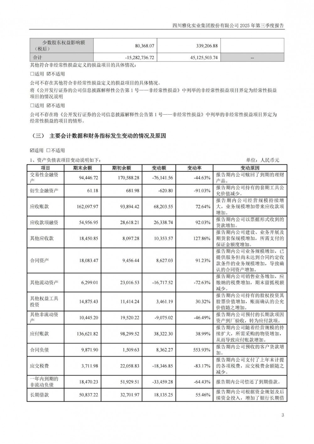 10月29日,雅化集团发布2025年三季度报告。前三季度公司实现营业总收入60.47亿元,同比增长2.07%;归母净利润3.34亿元,同比增长116.02%;扣非净利润2.89亿元,同比增长156.87%。