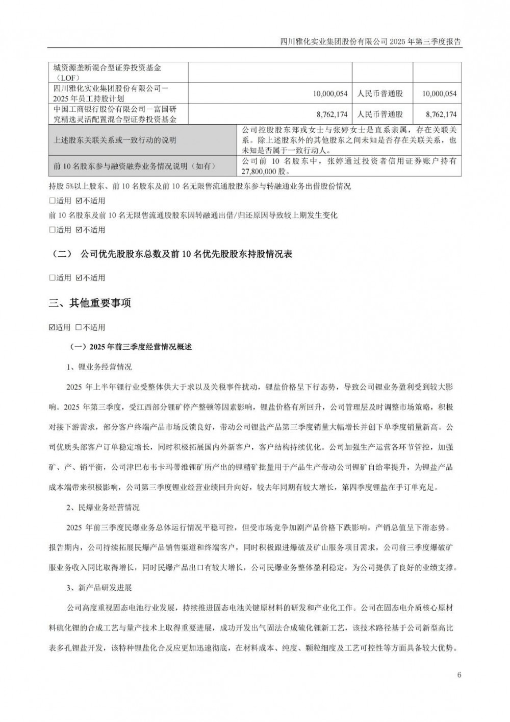公告显示,2025年上半年锂行业受整体供大于求以及关税事件扰动,锂盐价格呈下行态势,导致雅化集团锂业务盈利受到较大影响。2025年第三季度,受江西部分锂矿停产整顿等因素影响,锂盐价格有所回升,公司管理层及时调整市场策略,积极对接下游需求,部分客户终端产品市场反馈良好,带动雅化集团锂盐产品第三季度销量大幅增长并创下单季度销量新高。