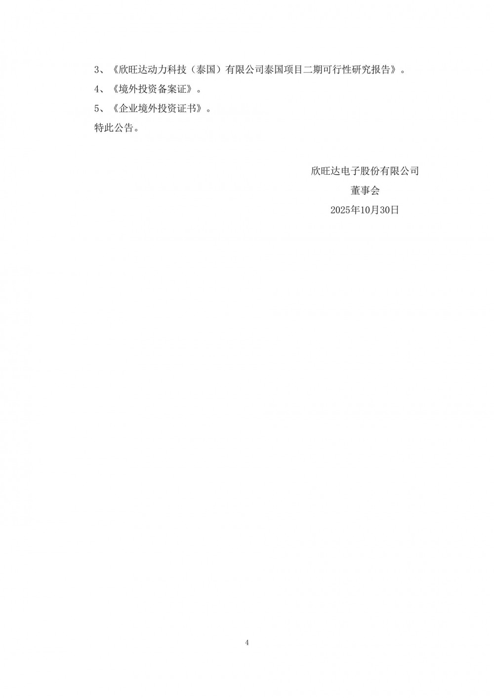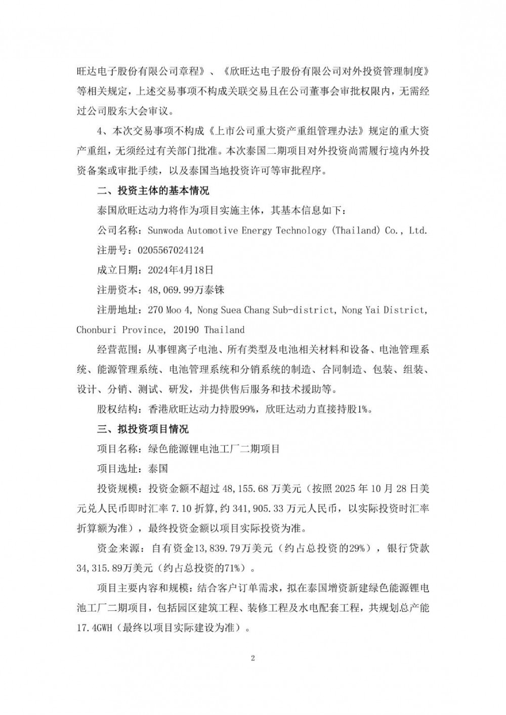 10月29日,欣旺达发布公告称,为进一步完善欣旺达动力在泰国的产能布局,满足公司未来业务发展和海外市场拓展的需要,欣旺达动力及香港欣旺达动力拟以自有及自筹资金在泰国投资建设绿色能源锂电池工厂二期项目,投资金额不超过48,155.68万美元(按照2025年10月28日美元兑人民币即时汇率7.10折算,约341,905.33万元人民币,以实际投资时汇率折算额为准)。