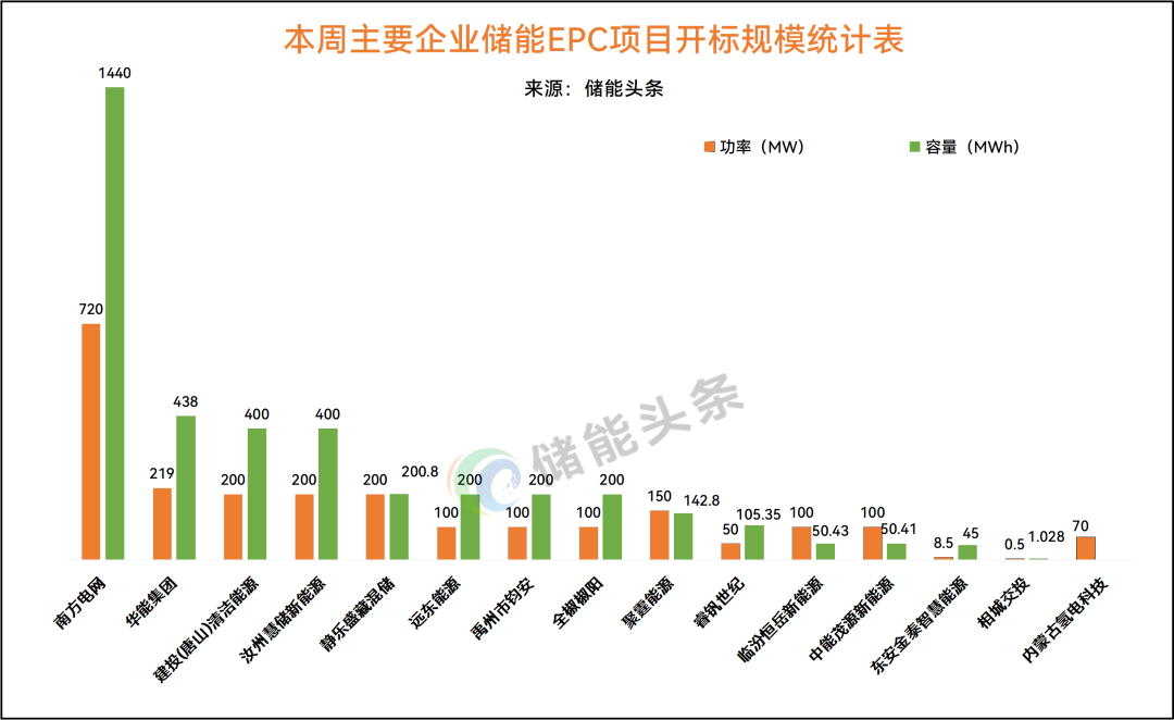 南方电网、华能集团、建投(唐山)清洁能源、汝州慧储新能源、静乐盛藏混储、远东能源、禹州市钧安、全椒椒阳、聚霆能源、睿钒世纪、临汾恒岳新能源、中能茂源新能源、东安金泰智慧能源等公布16个储能EPC中标项目。