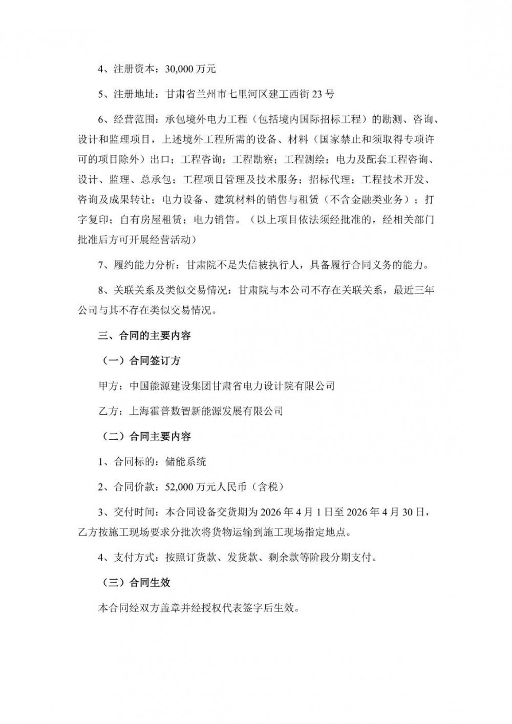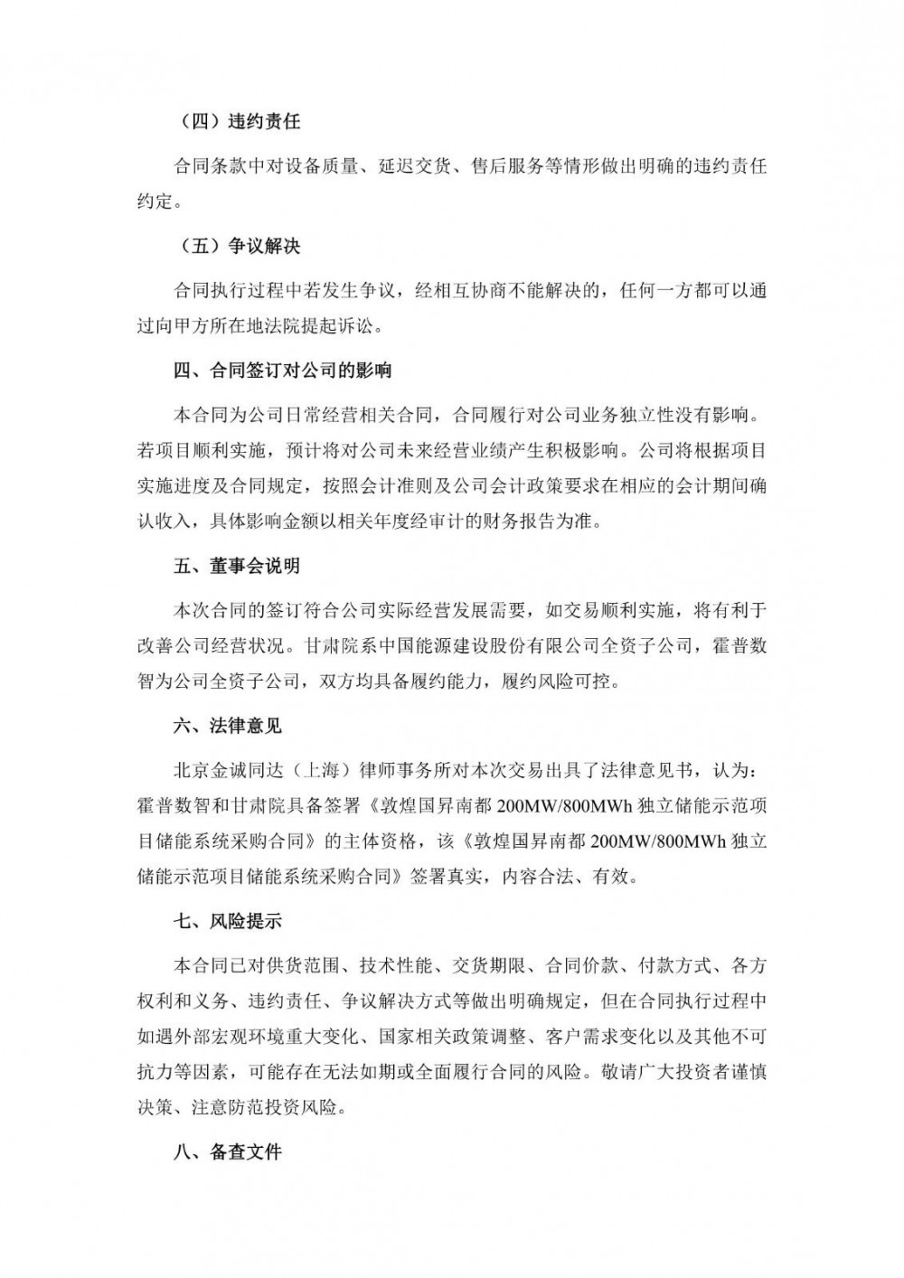 近日,霍普股份发布公告称,上海霍普建筑设计事务所股份有限公司全资子公司上海霍普数智新能源发展有限公司与中国能源建设集团甘肃省电力设计院有限公司(以下简称“甘肃院”)签订《敦煌国昇南都200MW/800MWh独立储能示范项目储能系统采购合同》。