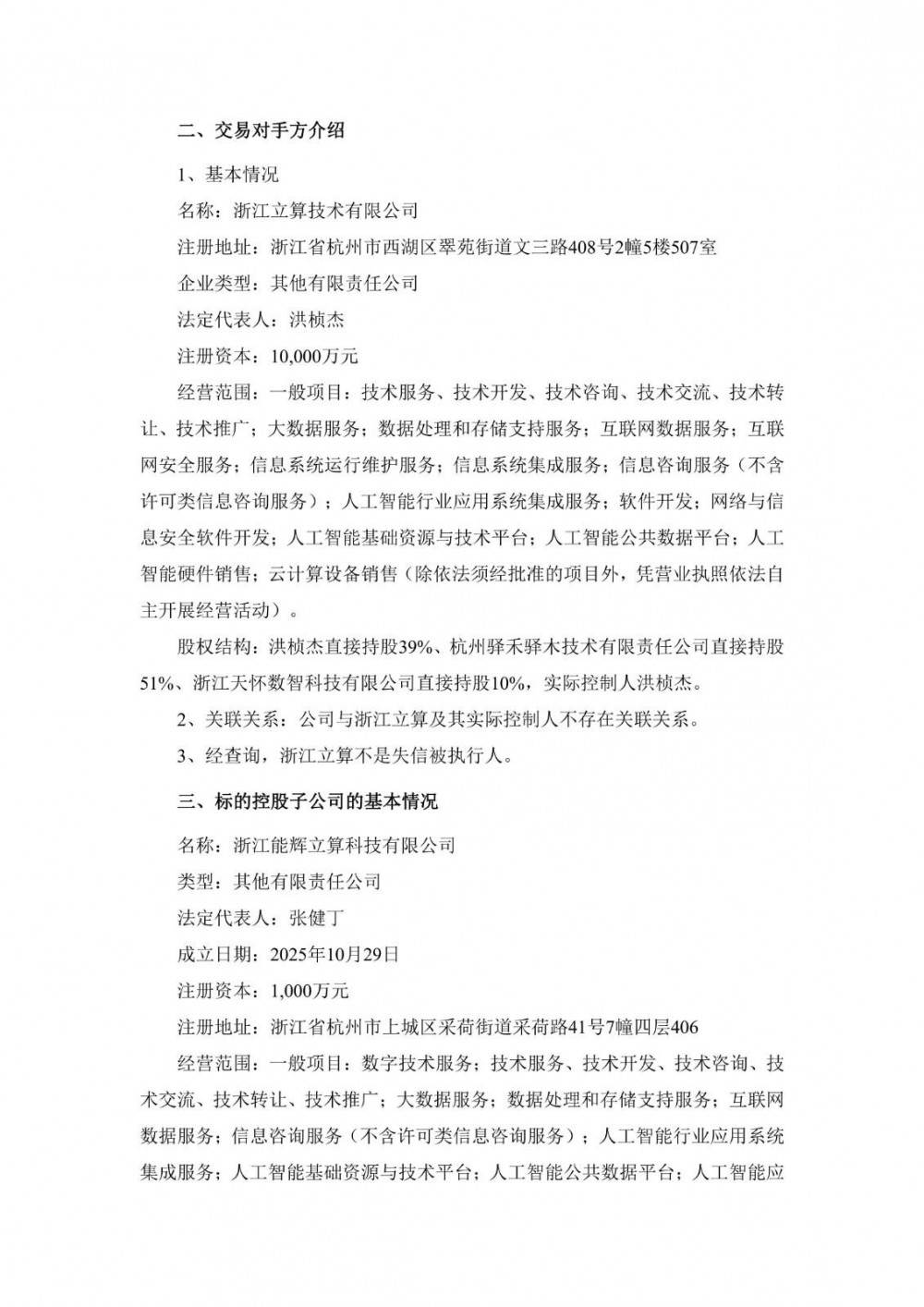 近日,能辉科技发布公告称,基于看好“算力+AI”的长远发展,把握“算力+新能源”的发展机遇,推动公司战略转型,上海能辉科技股份有限公司与浙江立算技术有限公司以货币方式共同出资人民币1,000万元,成立了控股子公司浙江能辉立算科技有限公司,其中,公司认缴注册资本510万元,持股比例51%。