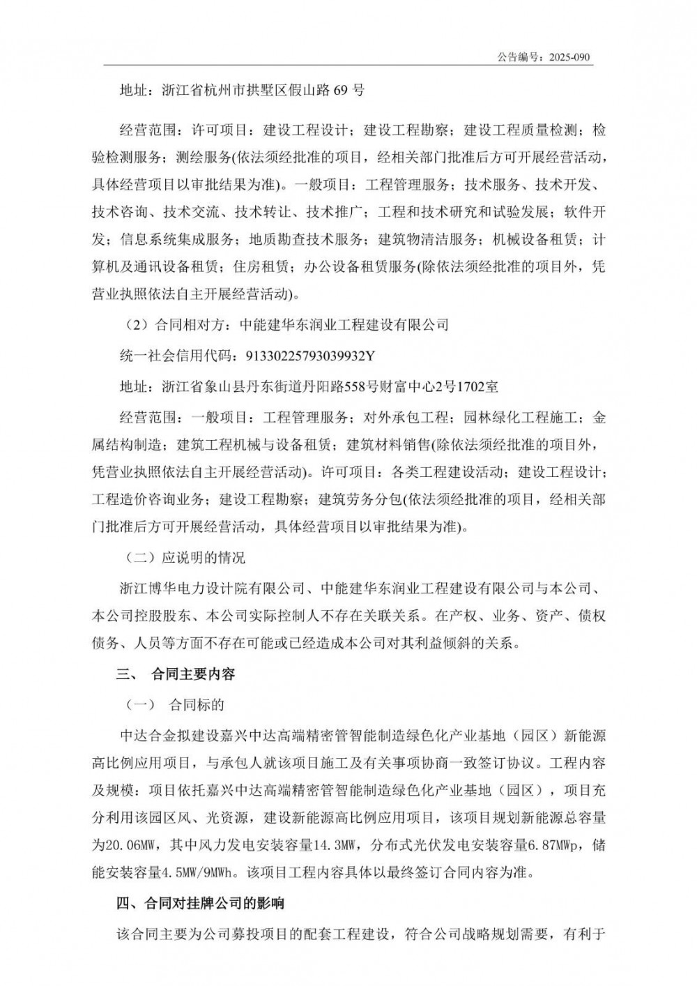 中达新材表示,该合同主要为公司募投项目的配套工程建设,符合公司战略规划需要,有利于保证和推进公司募投项目的进展,并促进公司长远发展。上述合同的签订不涉及关联交易,对公司独立性无重大不利影响。