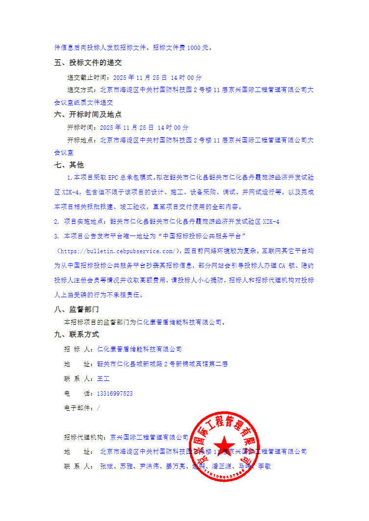 11月4日,韶关仁化100MW/200MWh独立储能项目EPC总承包招标公告发布。