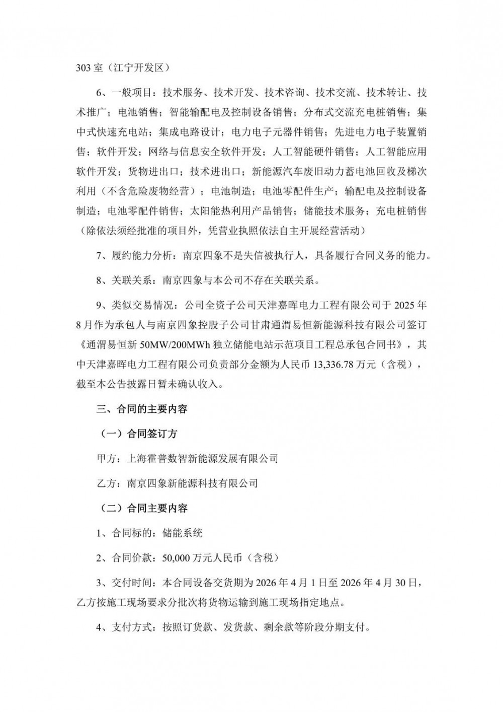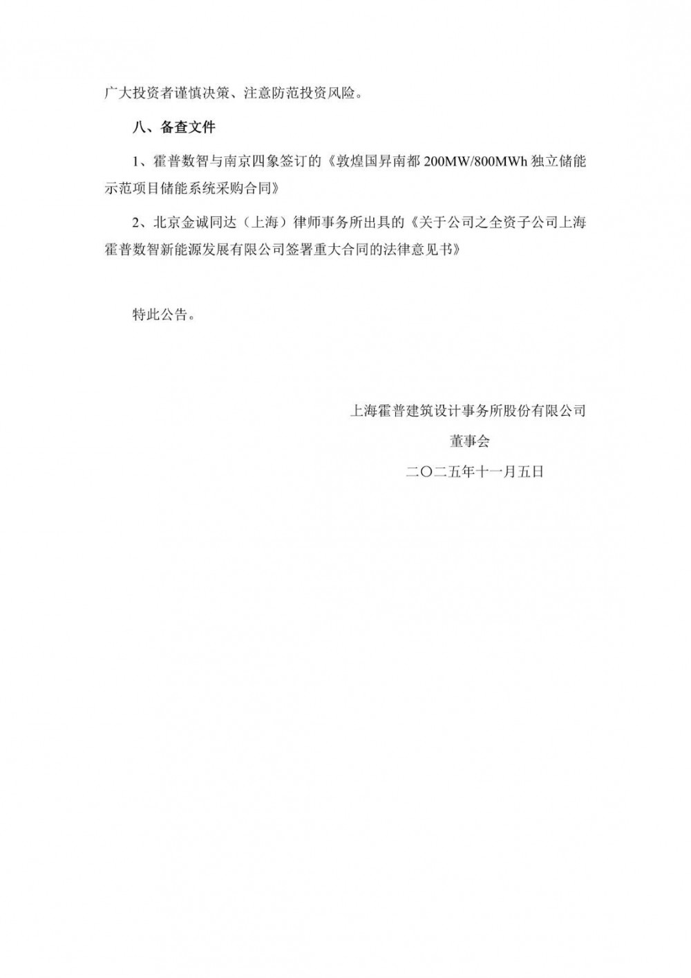 11月4日,霍普股份发布公告称,公司全资子公司上海霍普数智新能源发展有限公司与南京四象新能源科技有限公司签订《储能系统采购合同》。
