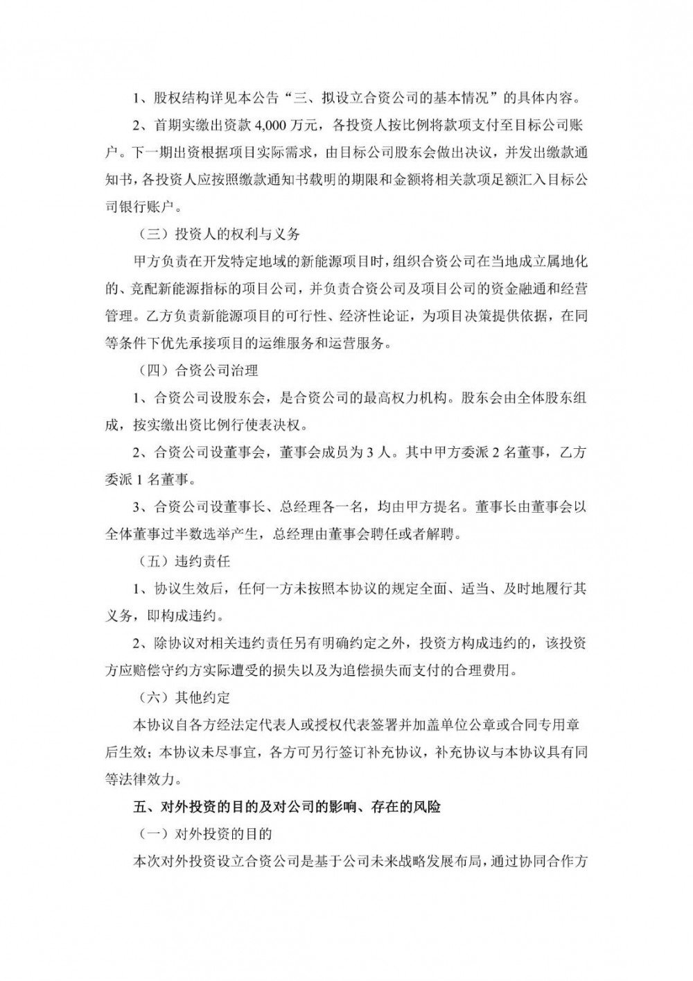 国能日新表示本次对外投资设立合资公司是基于公司未来战略发展布局,通过协同合作方在新能源资产开发优势及产业资源,进而充分发挥公司在新能源资产代运营领域的技术及服务优势,共同开拓资产代运营服务等商业新模式及其市场空间,有利于各方资源优势互补,巩固公司在行业内的竞争优势的同时形成新的盈利增长点,有助于公司健康、可持续发展,符合公司发展战略和全体股东的利益。