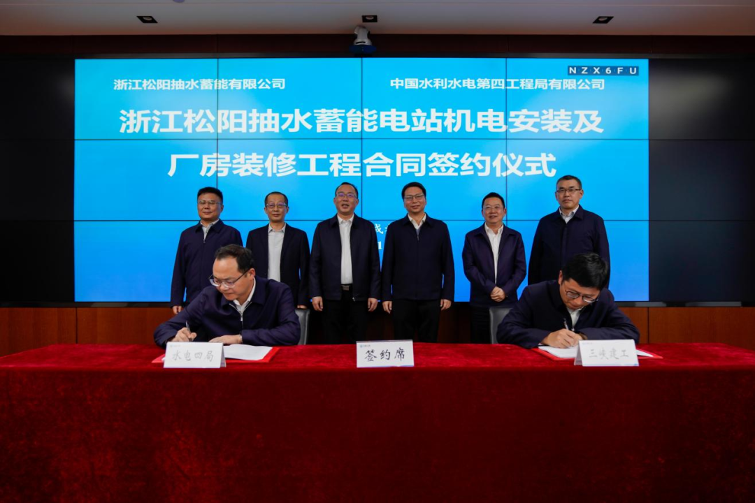 11月7日,安徽石台、浙江松阳抽水蓄能电站机电安装及厂房装修工程合同签约仪式在成都举行。三峡建工董事长、党委书记高鹏,水电十四局董事长、党委书记王曙平,水电四局总经理、党委副书记谭玉平出席签约仪式并致辞。三峡建工副总经理、党委委员唐波主持仪式。
