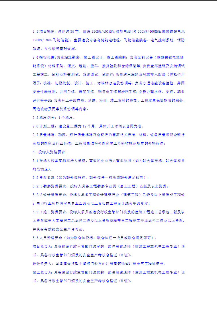 招标范围:负责站址勘察、施工图设计、竣工图编制;负责全部设备(磷酸铁锂电池储能系统)材料采购、催交、运输、接车、接货验收和仓储保管等;负责全部建筑及安装调试工程施工,试验及检查测试,系统调试,试运行;负责送出线路及对端接入改造(包括但不限于:核准、初设批复、设计、施工、对端站改造及协调等;负责办理储能设备抽检、并网安全性能检测、并网手续、调度手续,购售电手续等涉网手续负责办理水保、安评、职业评价等手续负责开工手续办理、消缺、培训、竣工资料的移交、工程质量保修期限的服务周边政府及民事关系协调等内容。