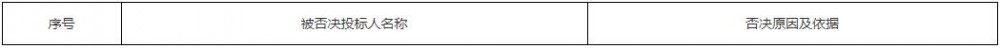 三、投标文件被否决的投标人名称、否决原因及其依据(可选):
