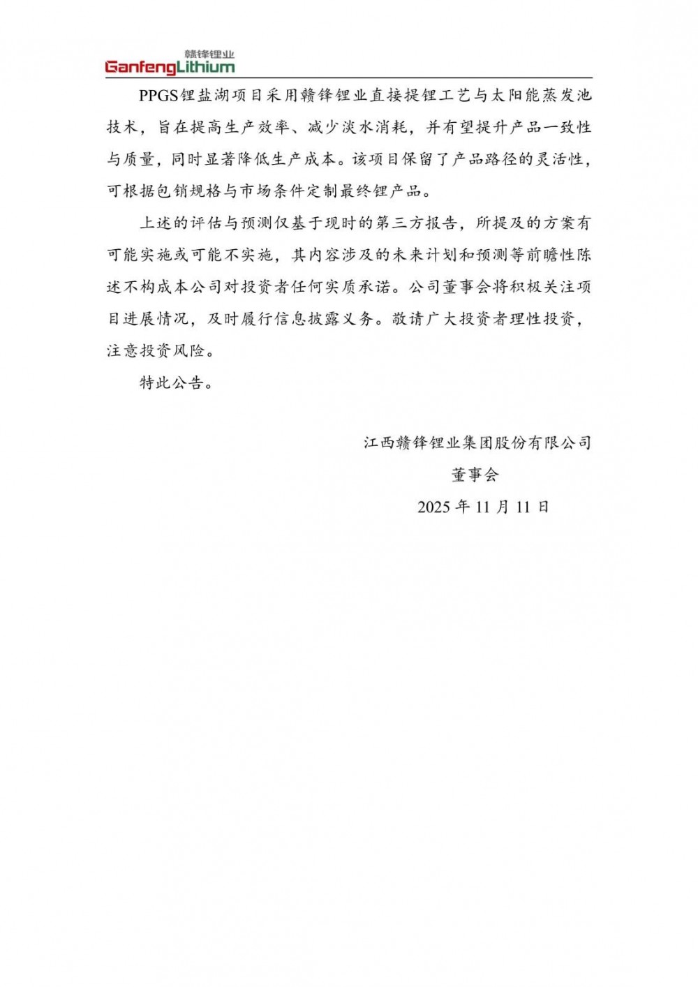 11月10日,赣锋锂业发布公告称,近日,阿根廷萨尔塔省矿业和能源秘书处已为PPGS锂盐湖项目一期颁发了《环境影响评估报告》,标志着该项目取得关键进展。PPGS锂盐湖项目计划于2026年上半年向阿根廷政府提交大型招商引资制度(RIGI)申请,以获得当地政府的支持和财税激励政策。
