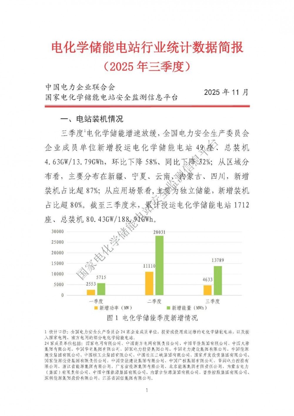 近日,中国电力企业联合会与国家电化学储能电站安全监测信息平台联合发布《电化学储能电站行业统计数据简报(2025年三季度)》。
