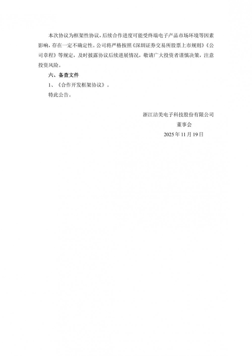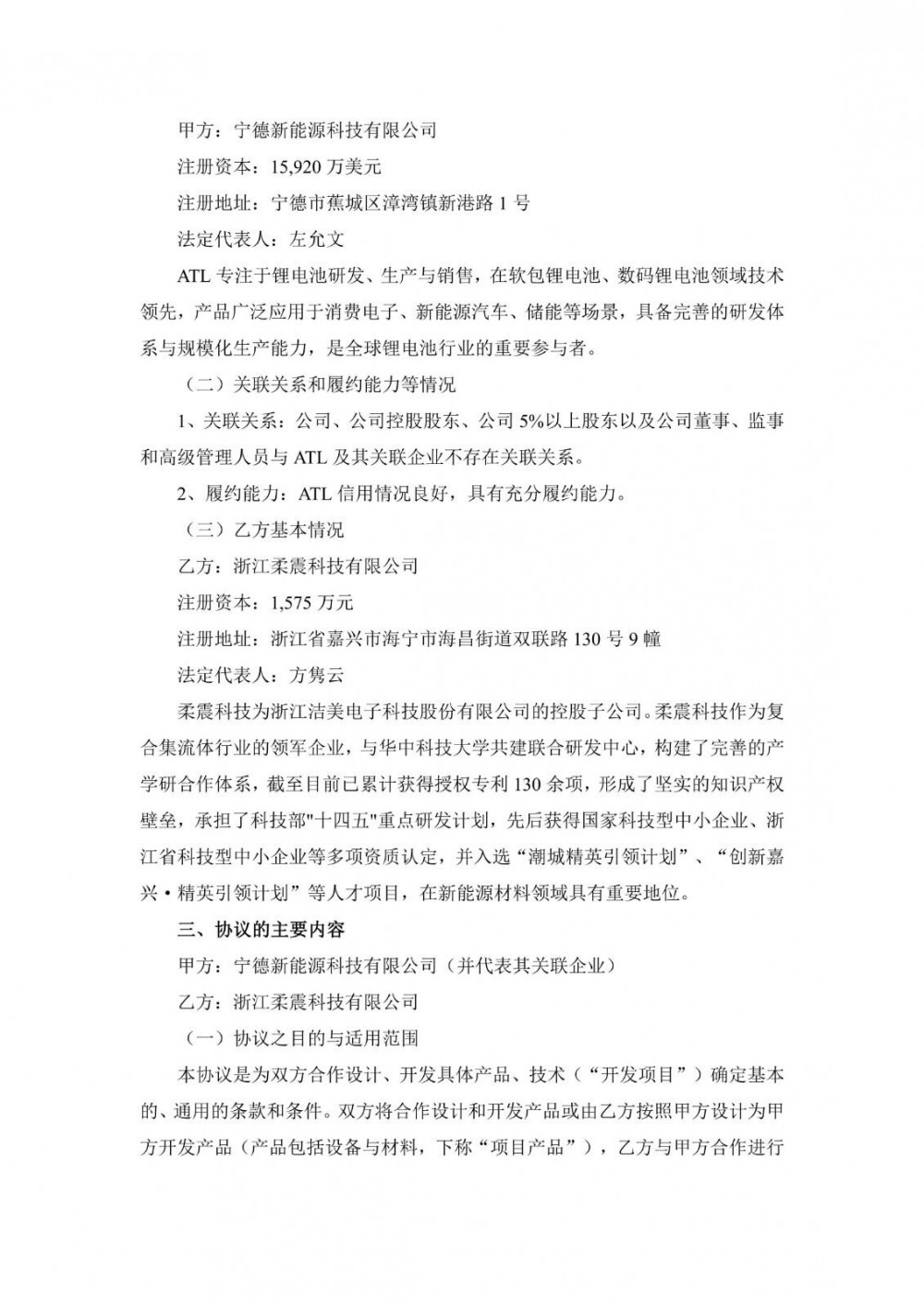 11月18日,洁美科技发布公告称,公司控股子公司浙江柔震科技有限公司与宁德新能源科技有限公司签署了《合作开发框架协议》。