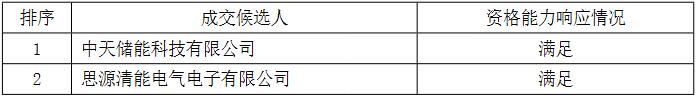 第一中标候选人为中天储能科技有限公司,投标报价为21600000元,折合单价0.54元/Wh;第二中标候选人为思源清能电气电子有限公司,投标报价为21400000.01元,折合单价0.535元/Wh。