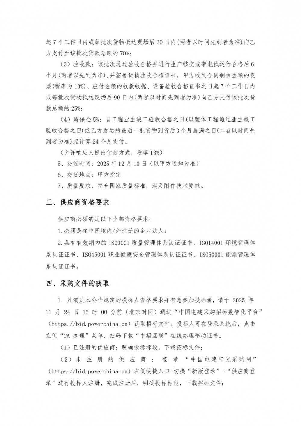 11月20日,中国电建电建装备公司2025年11月第三批储能变流器采购项目公开询比采购公告发布。