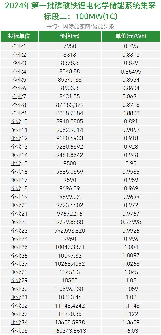 共有两家企业入围,中标候选人、中标备选人各1家,报价范围0.795-1.361元/Wh,平均报价0.966元/Wh。