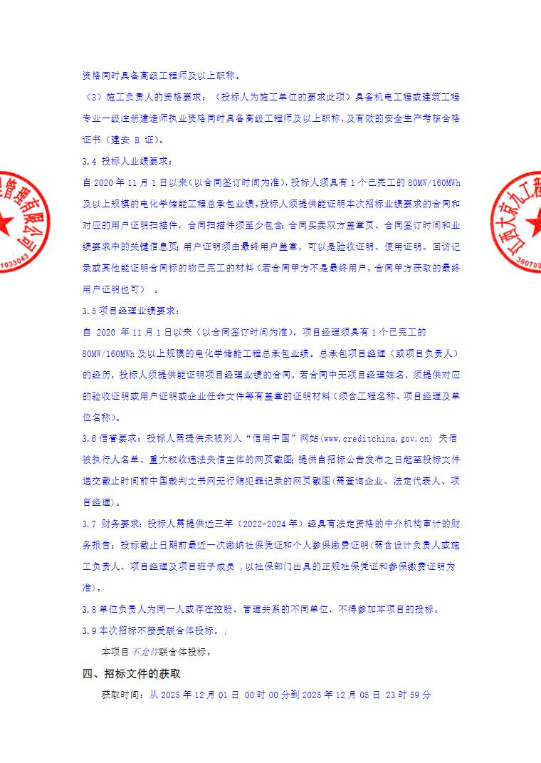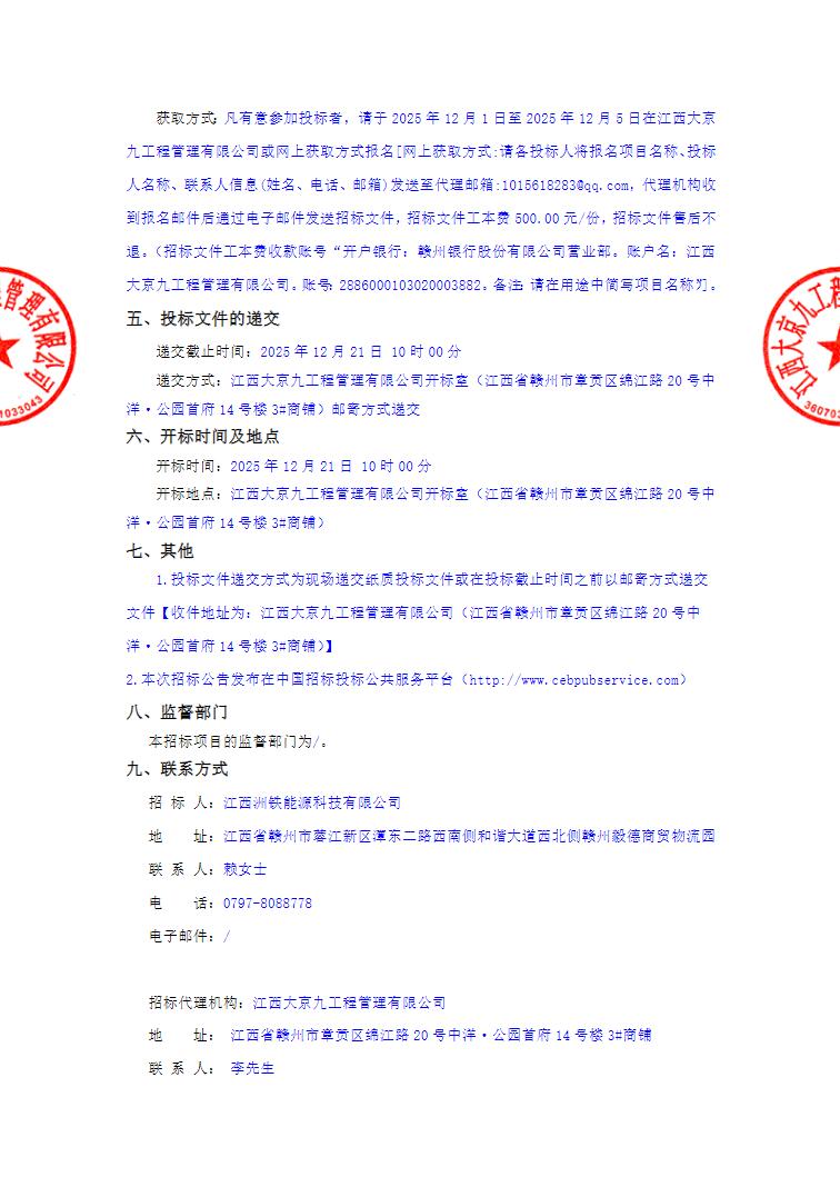 11月30日,赣州蓉江新区江西洲铁能源科技有限公司独立储能试点示范项目EPC总承包招标公告发布。