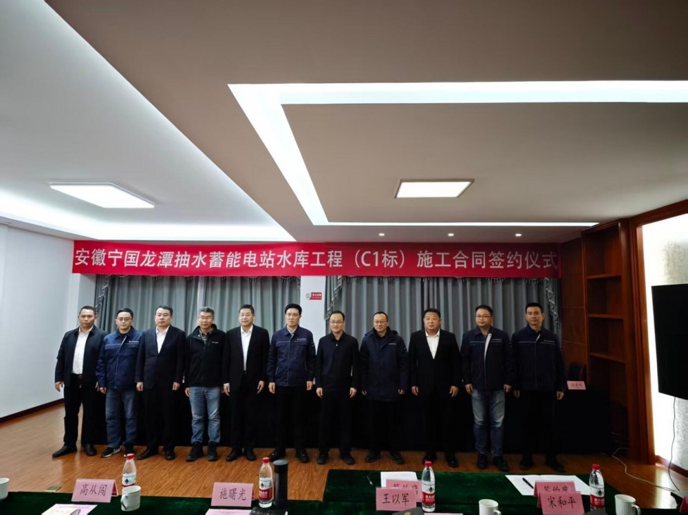 12月2日,安徽宁国龙潭抽水蓄能电站水库工程C1标施工合同签约仪式在安徽省宁国市举行。江苏省国信集团(宁国)抽水蓄能发电有限公司党委书记、董事长施曙光,党委副书记、总经理高从闯;公司党委副书记、总经理吴磊,党委委员、副总经理高争强出席签约仪式。
