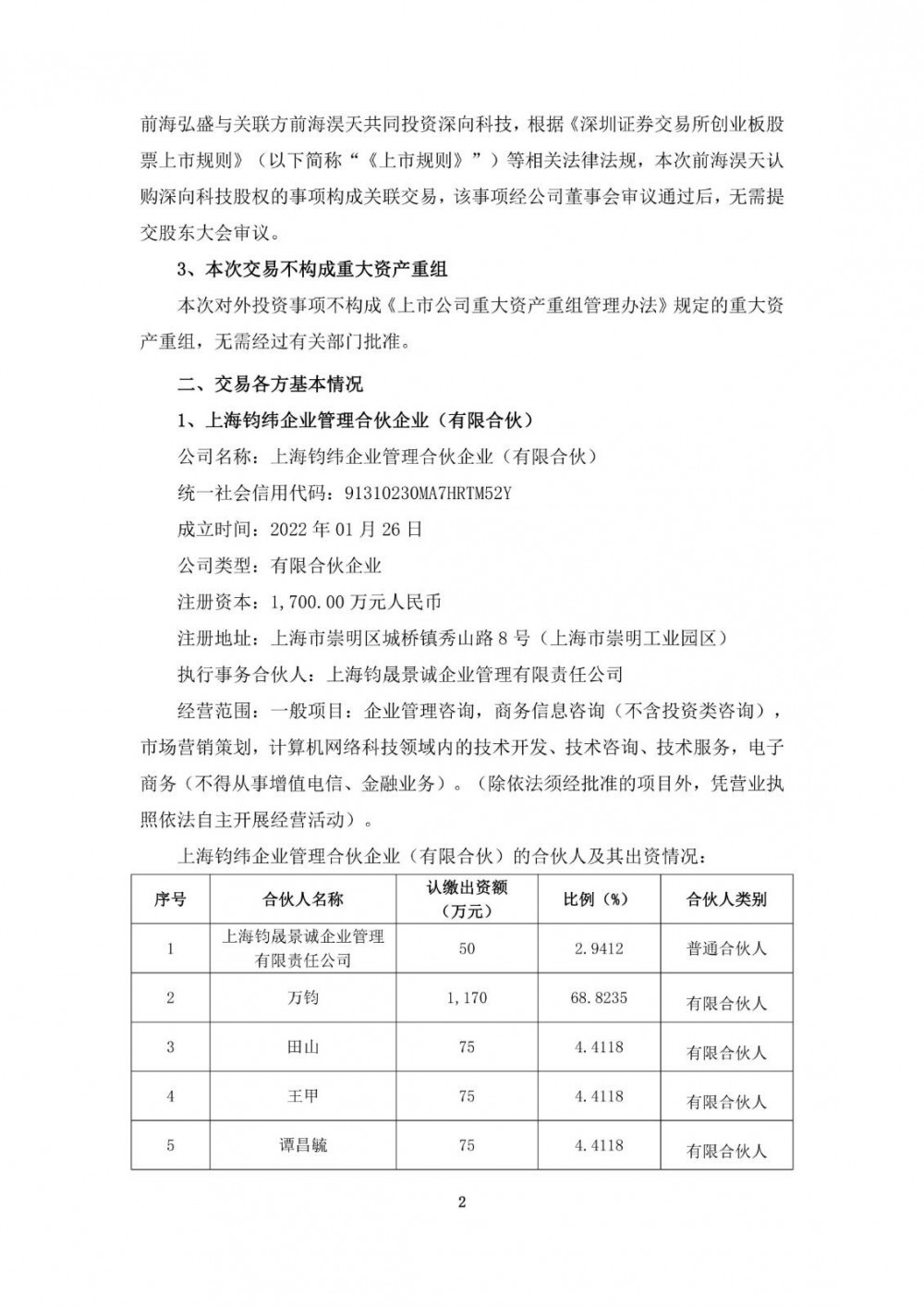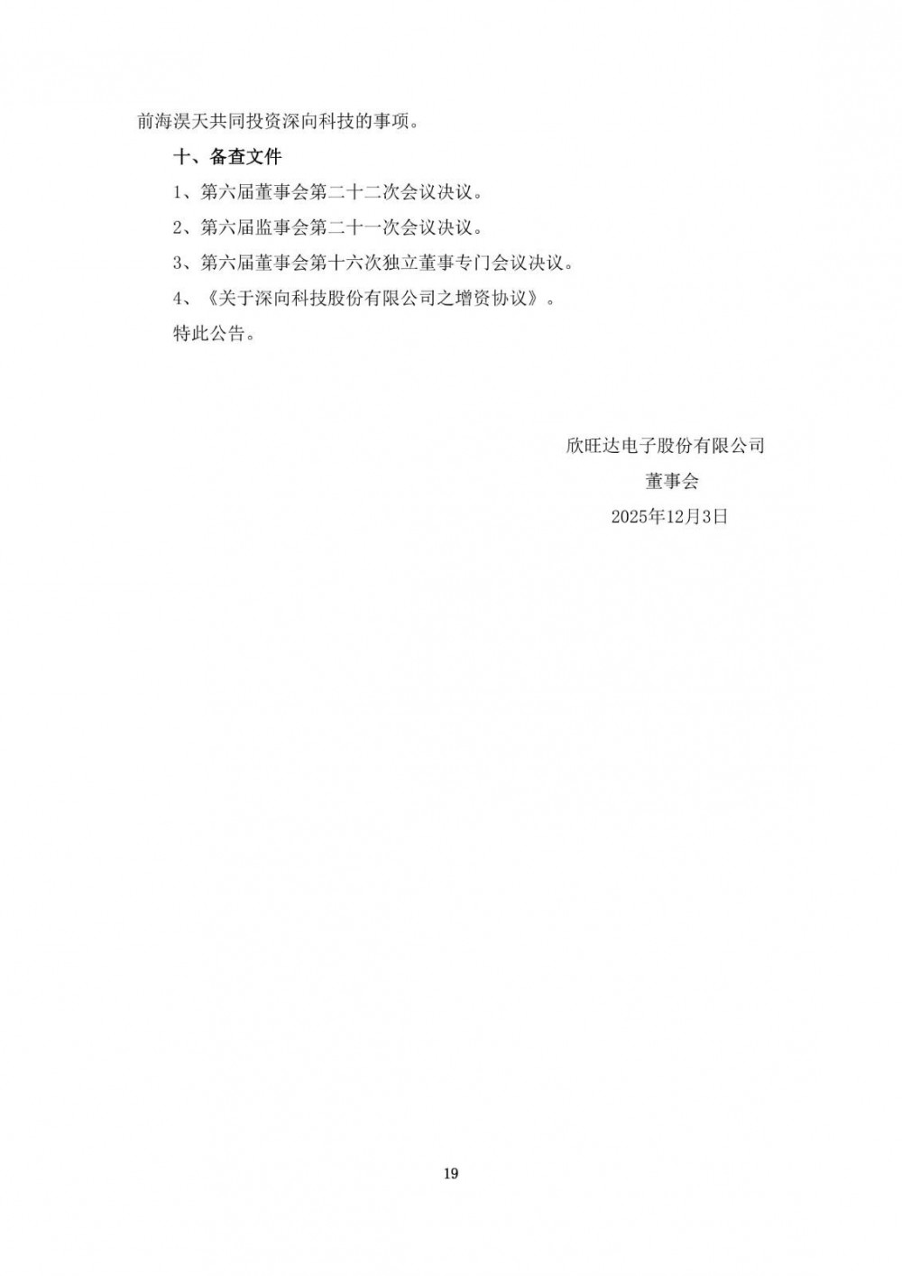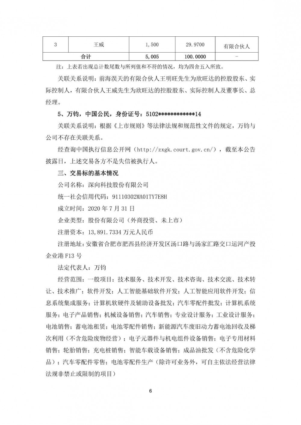 12月3日,欣旺达发布公告称,公司关联方深圳市前海淏天投资管理合伙企业(有限合伙)拟以自有资金人民币5,000万元向深向科技股份有限公司(以下简称“深向科技”)进行增资。