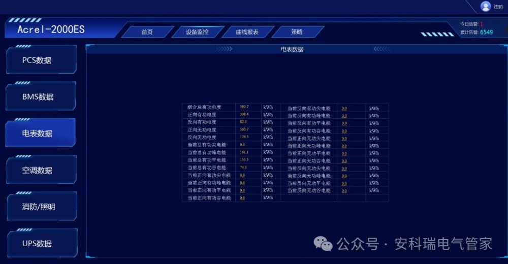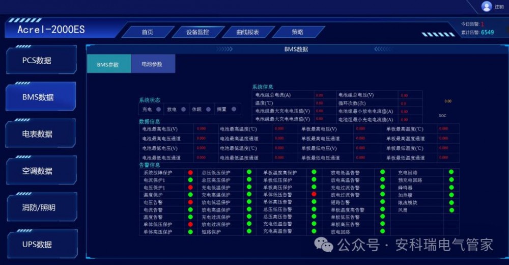 安科瑞储能能量管理系统Acrel-2000ES,专门针对工商业储能柜、储能集装箱研发的一款储能EMS,具有完善的储能监控与管理功能,涵盖了储能系统设备(PCS、BMS、电表、消防、空调等)的详细信息,实现了数据采集、数据处理、数据存储、数据查询与分析、可视化监控、报警管理、统计报表等功能。在应用上支持能量调度,具备计划曲线、削峰填谷、需量控制、防逆流等控制功能。