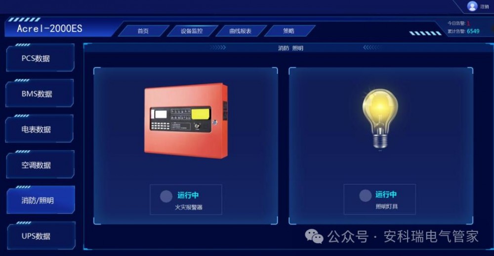 显示当前火灾报警器和照明灯具的运行状态。