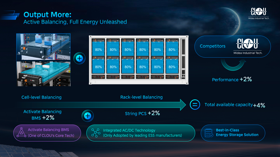 Aqua-C2.5S mini传承Aqua-C2.5S核心技术。为提升全生命周期可用容量,科陆自研主动均衡 BMS 技术结合组串式 PCS,可实现全生命周期放电量提升 4%,系统 RTE≥91%。该系统延续 Aqua 系列在液冷热管理领域的领先优势,将系统内部温差控制在 4℃以内,有效提升电芯一致性、延缓衰减、预防热失控。